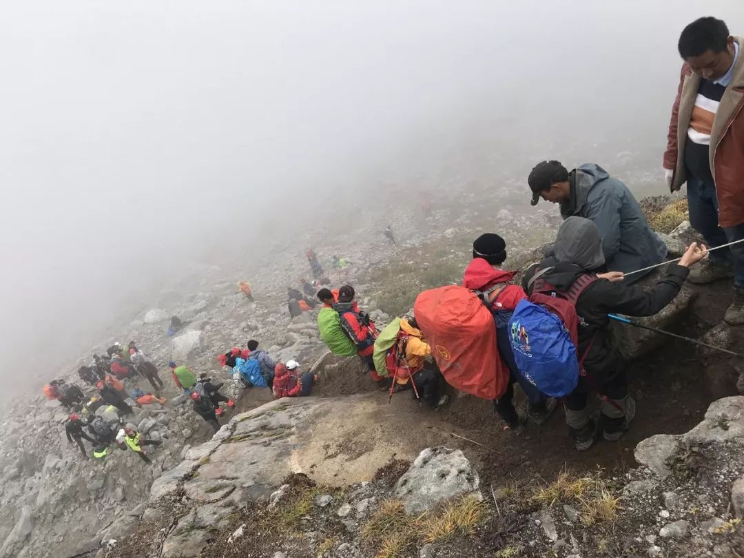 今天的强度是之前的两倍,不仅重装,且上升多,全程以碎石路、陡坡为主。2 点多钟,在细密的小雨中开始了今天的行程。