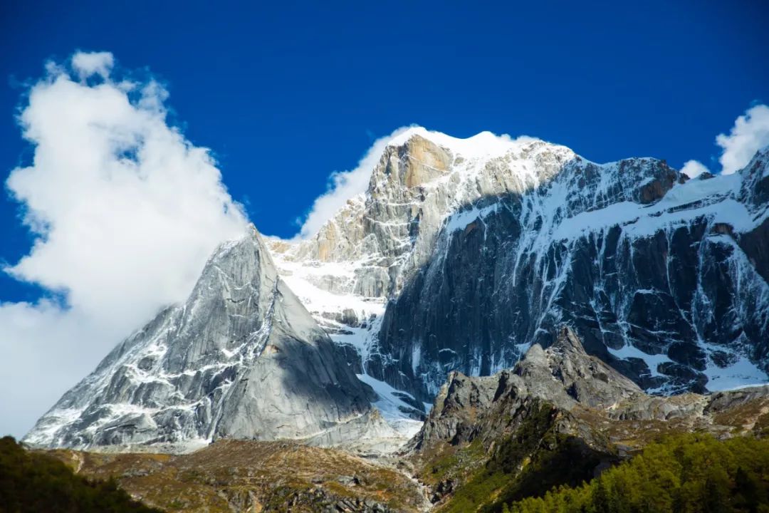 青藏高原与四川盆地挤压碰撞,一片连绵的山脉以及广袤的高原赫然现世,成为中国极致自然风光最密集区域之一,这其中,四座山峰以凌厉之势脱颖而出,万众瞩目,亦被列为世界自然遗产,它们便是——四姑娘山(主峰幺妹峰海拔 6250m,三峰海拔 5355m、二峰海拔 5276m、大峰海拔 5025m)。四姑娘山在藏语中叫"斯各拉",即为“掌管生日的主神”,这里终年积雪,峰耸入天,圣洁静美,人称“蜀山皇后”,而西方赞其为“东方的阿尔卑斯”。