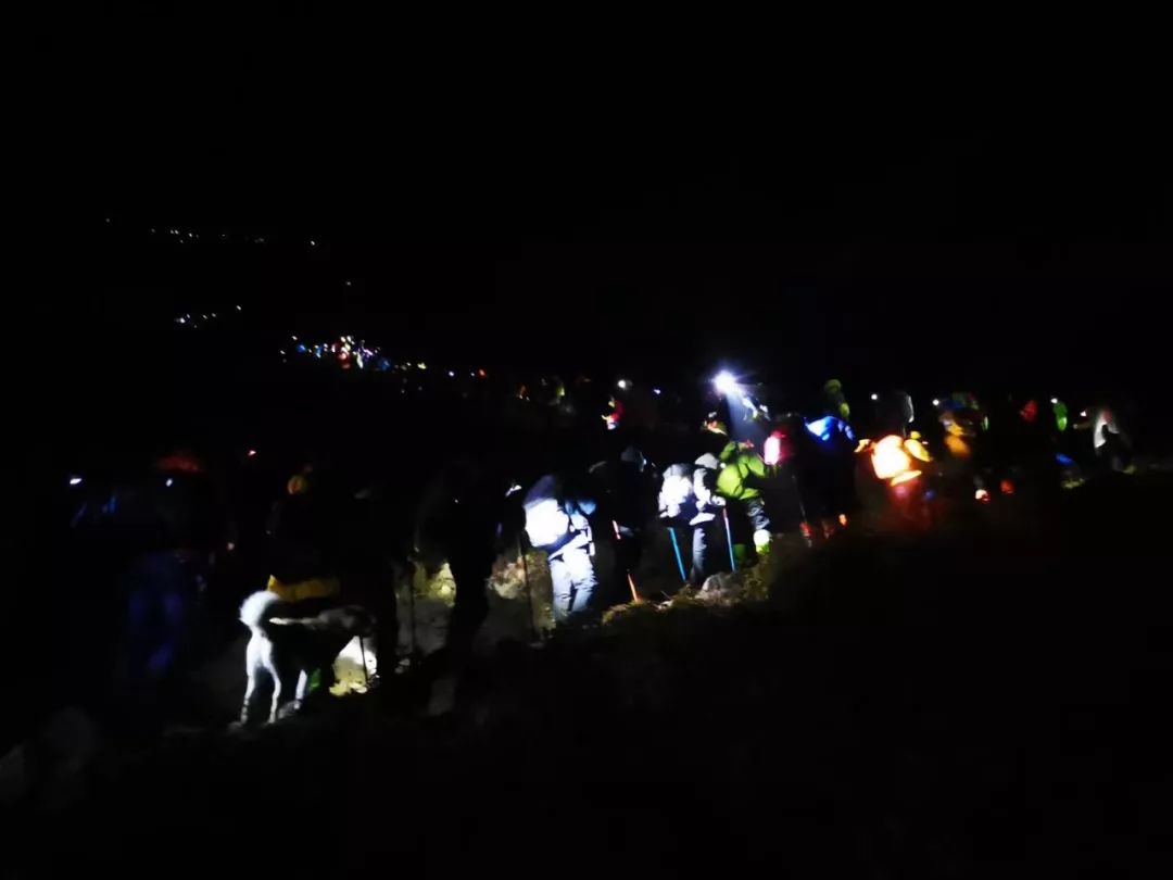 漆黑的夜色中,什么也不想,只是看着头灯光线范围的眼前,一步又一步坚持着,坚持着……艰难爬到第二个平台时天亮了,回首一望,一座醒目的大山触手可及,仿佛我已与它肩并肩,一身的疲惫觉得值了。