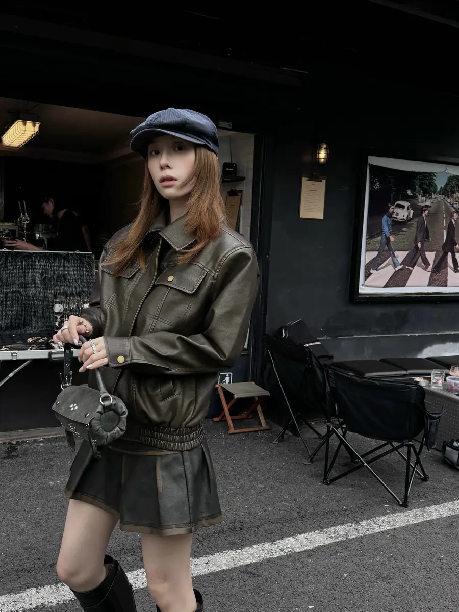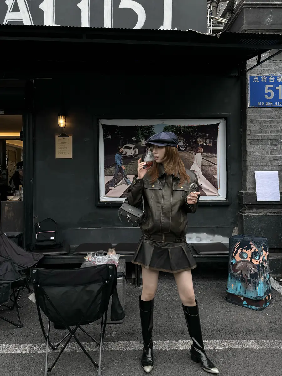NUTH23AW | 假期探店look,皮革套装上身,穿出时髦感很重要~💕