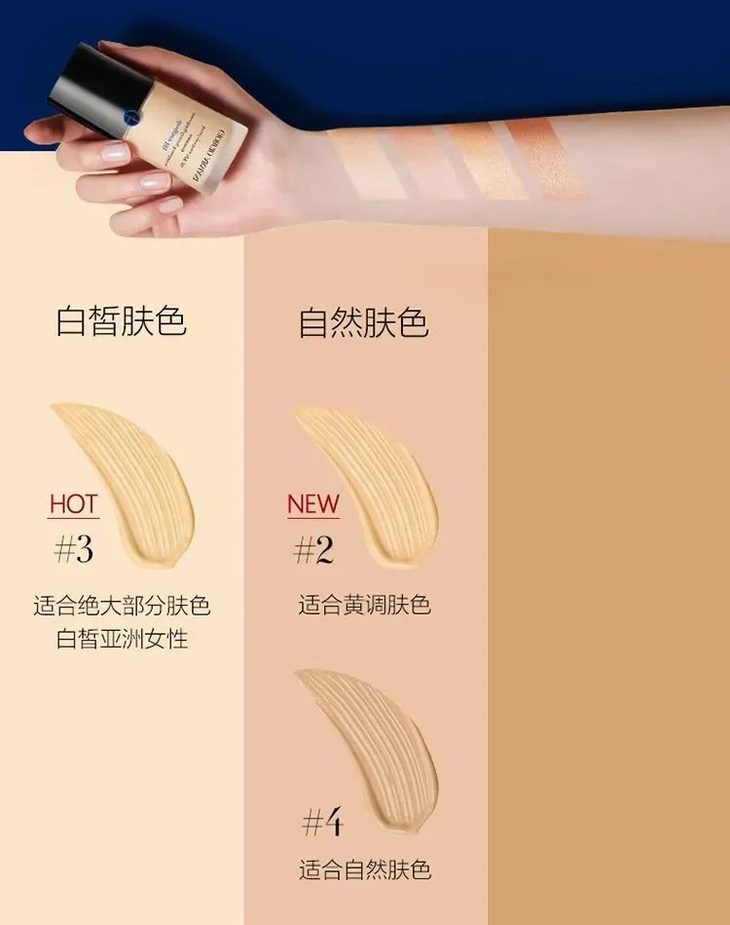 自然偏黄肤色,喜欢追求自然妆效的姐妹可以选2号色,皮肤本身白的姐妹可以选3号。