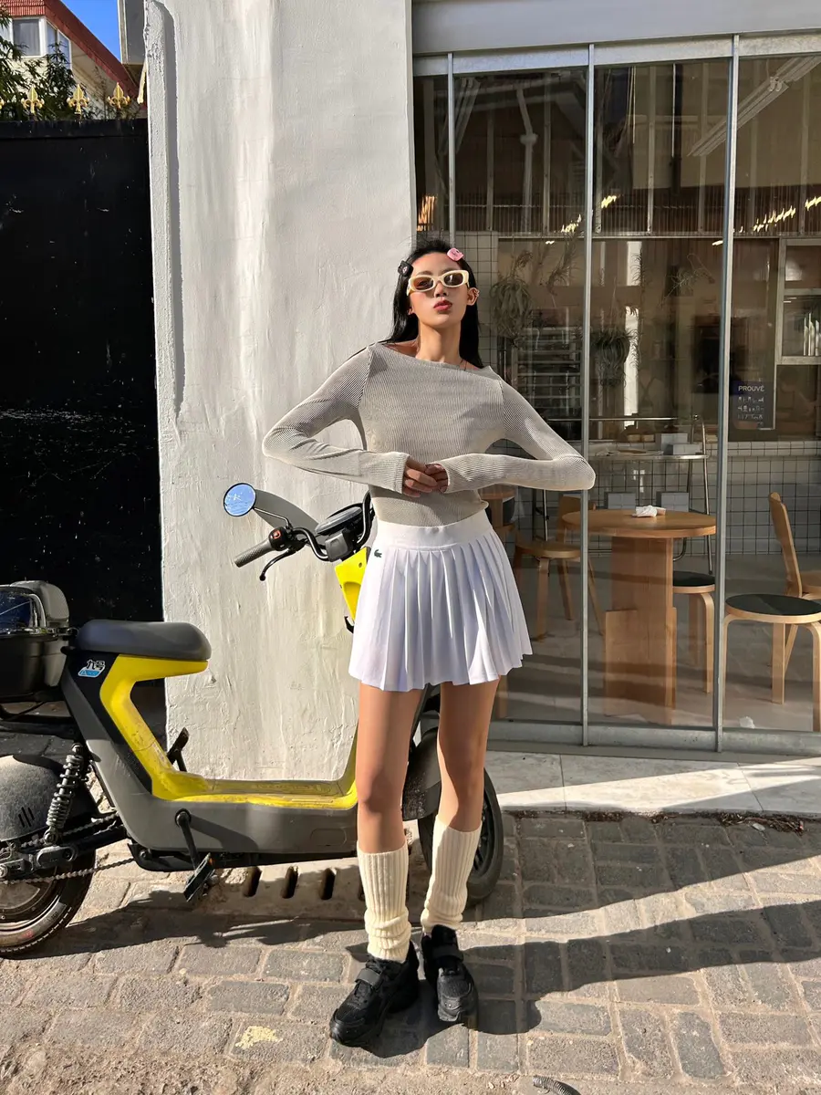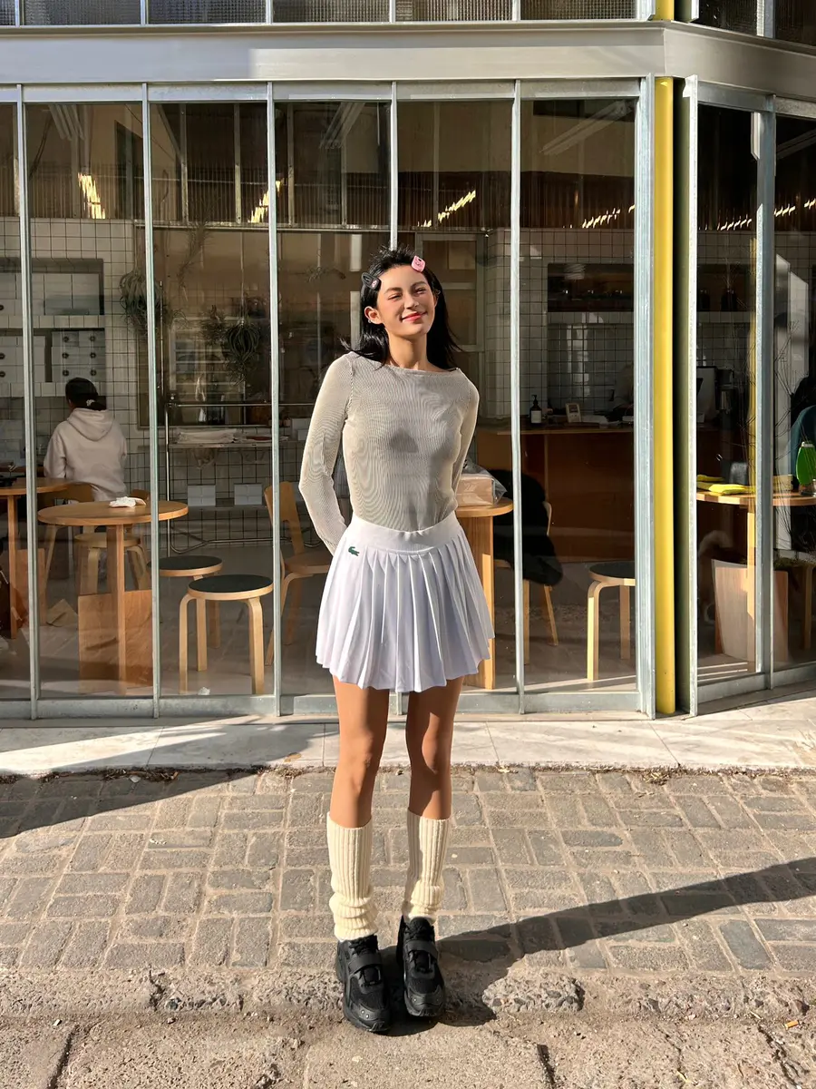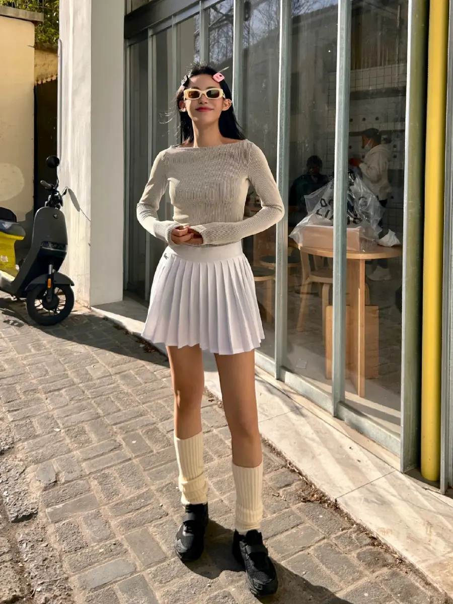 新品上身|一字领长袖 + 网球百褶裙,活力超减龄💯
