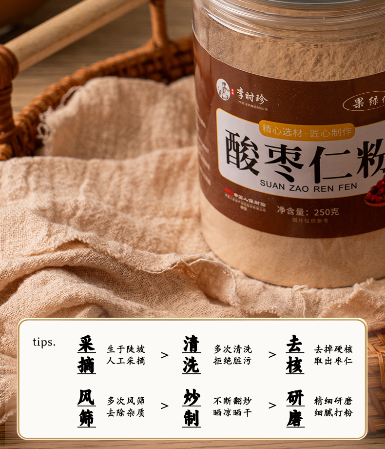 粉质更细腻,营养成分更充分地释放,从而提高人体对酸枣仁中有效成分的吸收率,每一环节都精益求精!
