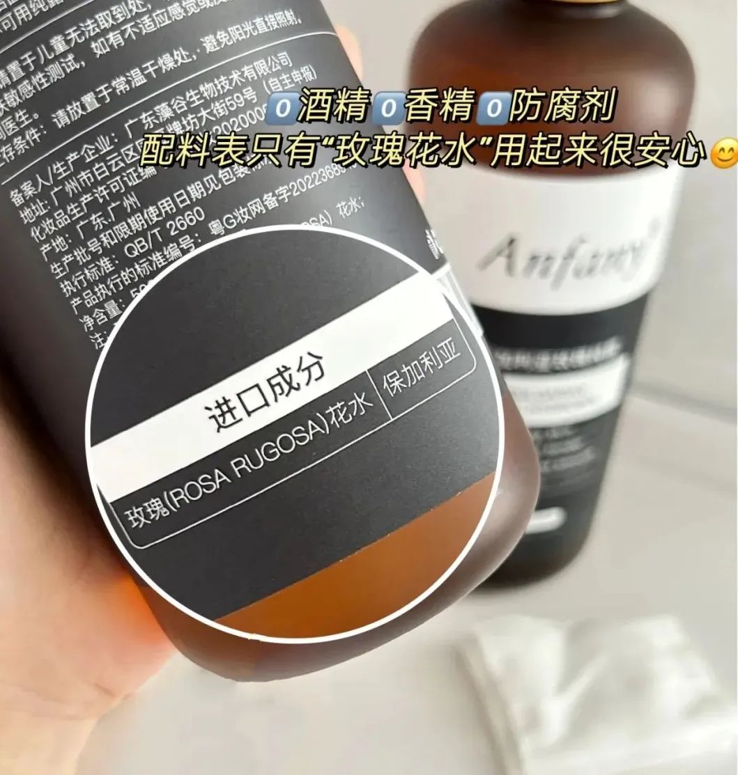 市面上的「保加利亚玫瑰纯露」有很多,但并不是每款纯露都能做到像【Anfany】这么成分单一的。