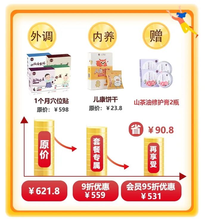 调理体质,要内外兼顾 『外调内养』套餐全场9折 可与会员折扣、新人券叠加使用 任意一款穴位贴+药食同源产品(至少一件) ☝点击图片,立即购买 |