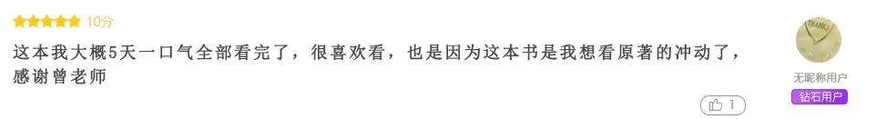 读者A:5天一口气看完了,看完书后直接产生了看原著的冲动