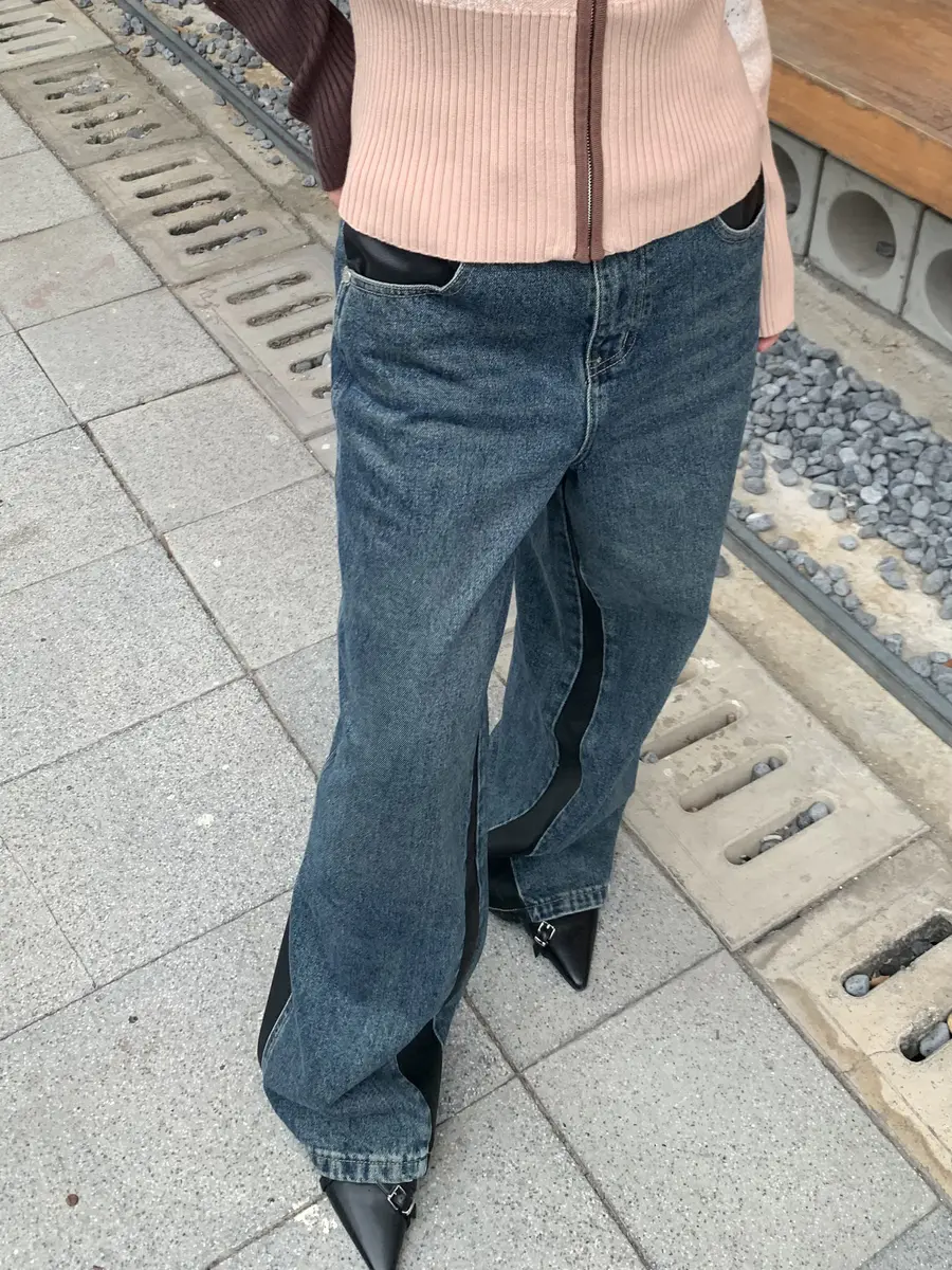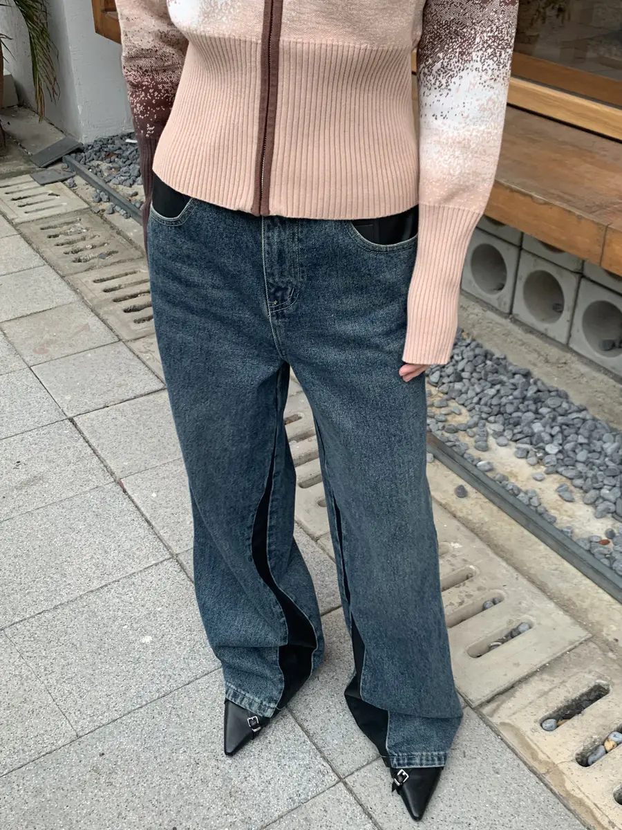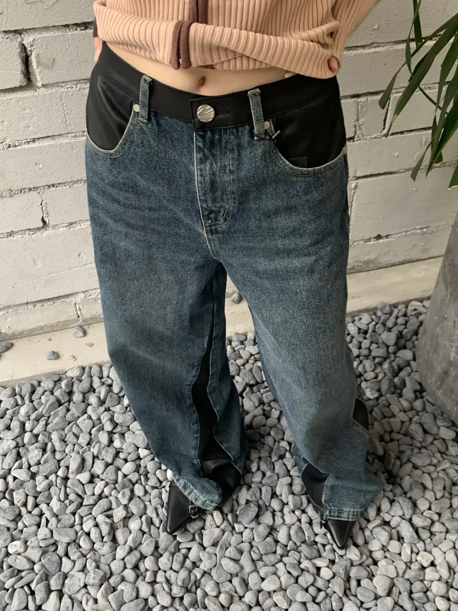 远看是一条百搭的基础牛仔裤,其实设计了小块的复古皮拼接;适合多种场景的穿搭需求,在日常里透露了一点「非常规」。