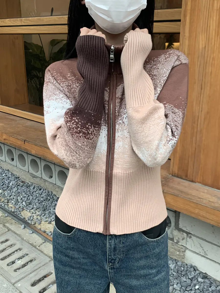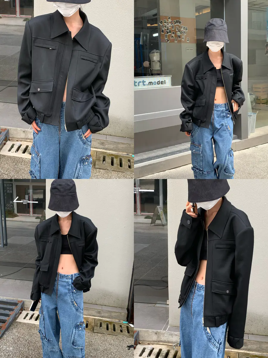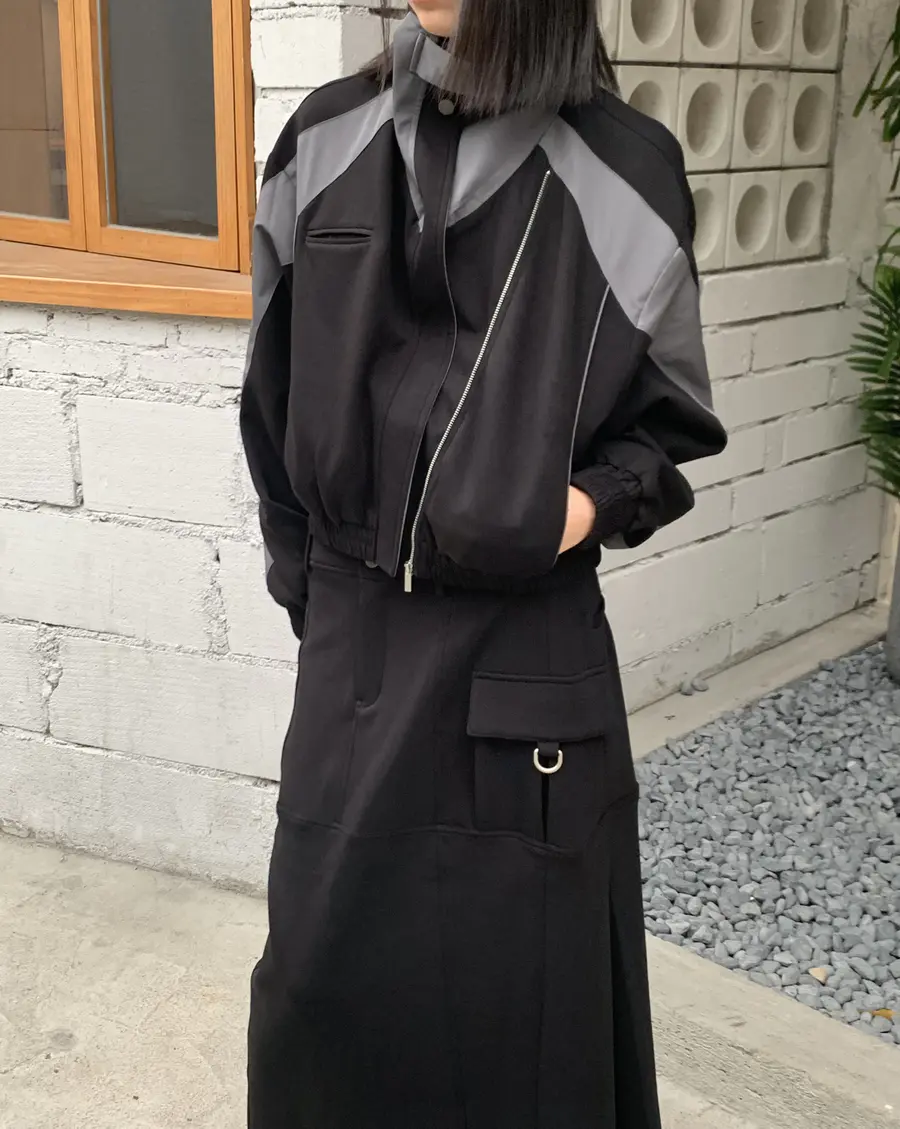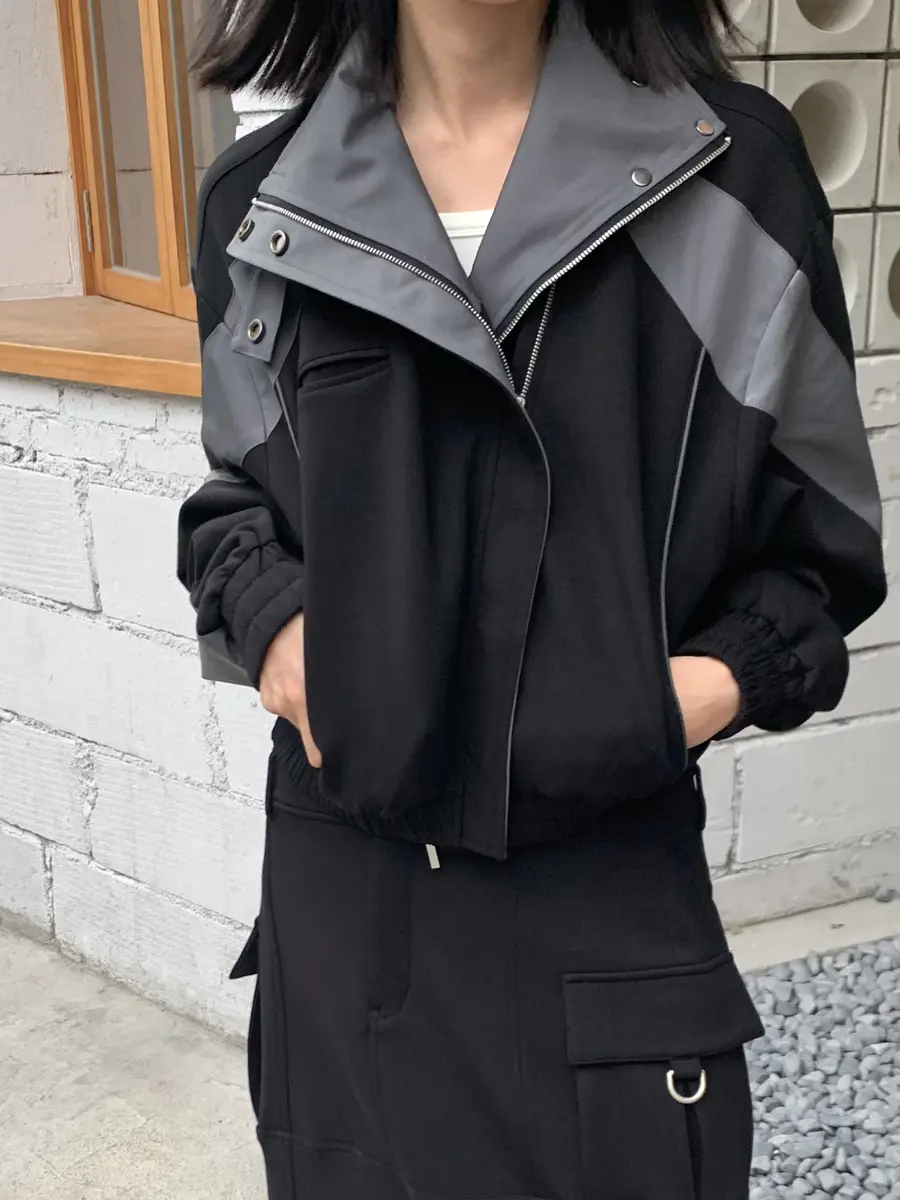 鲜明的轮廓造型,修身的同时增加了穿着者的飒气;灰黑的拼接色块提升视觉,拉链的设计增加了可玩性。是一款可以搭配性很高的单品。