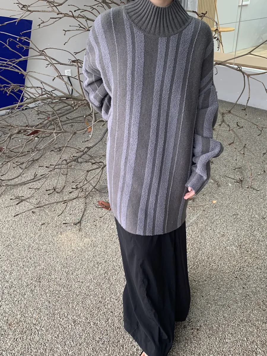 @DeepSky星河漫游灰色条纹毛衣