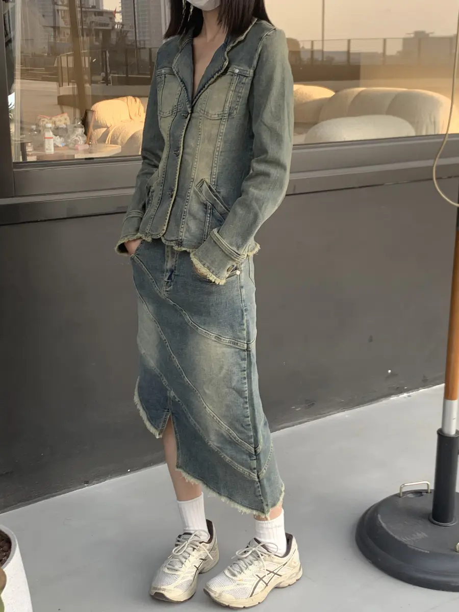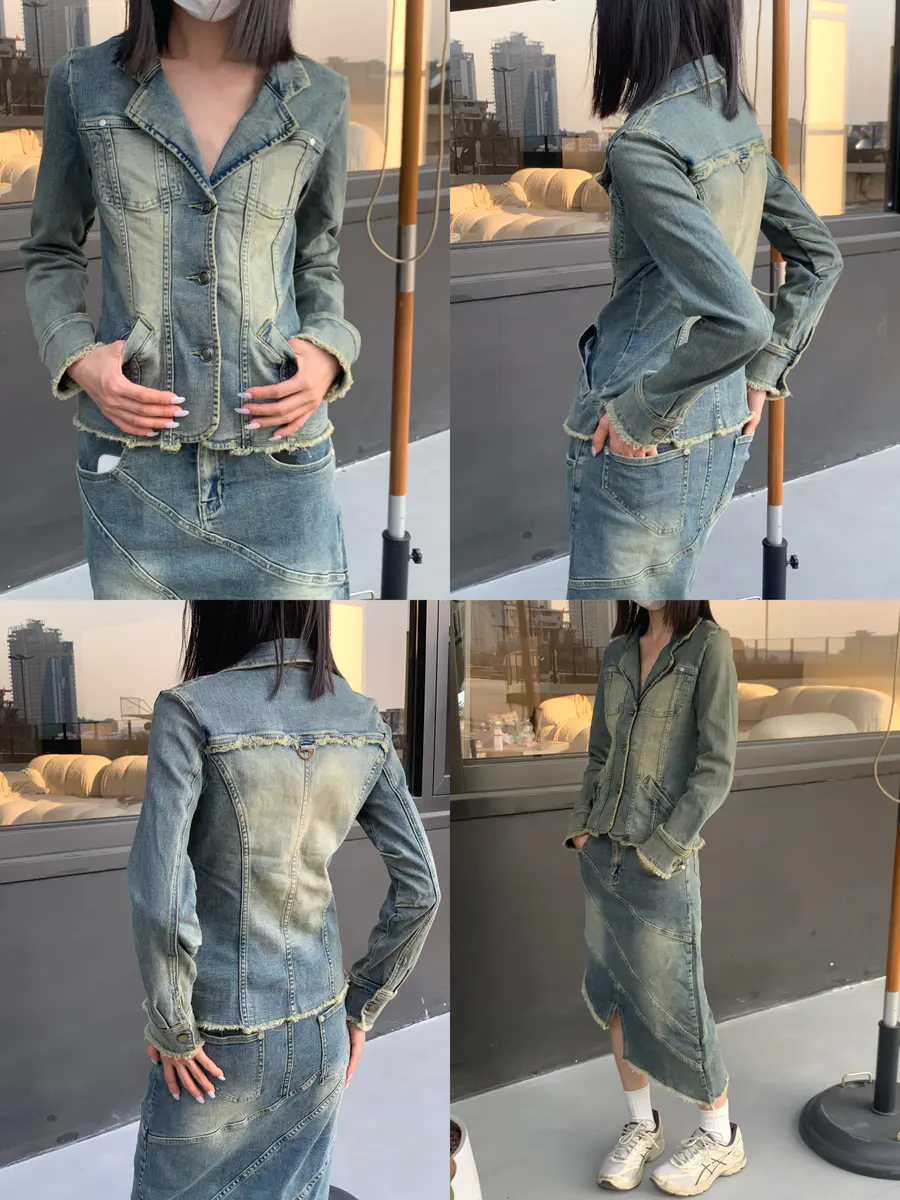 修身收腰版型;色系偏向浅蓝色;上身自带慵懒&复古体验。
