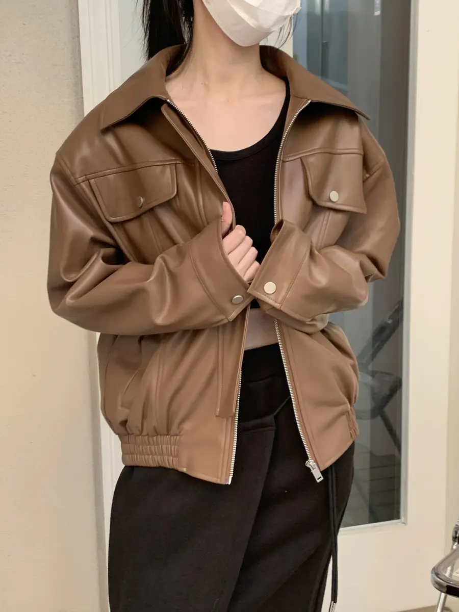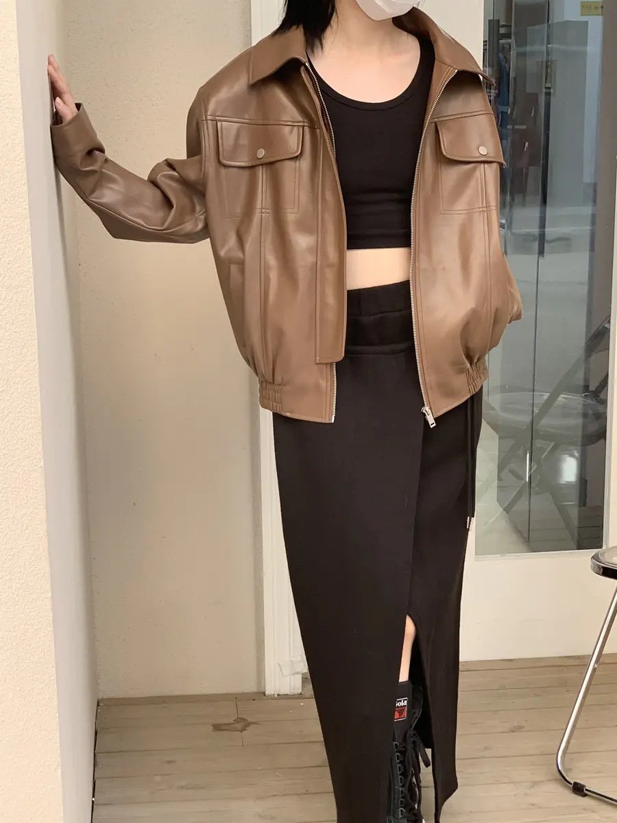 去年热销的黑色皮衣;今年新增棕色;「男女皆可拥有」上身复古感满满;版型简洁;好搭配;注意:和去年黑色款皮衣版型一样;今年只是新增了“棕色哦“。