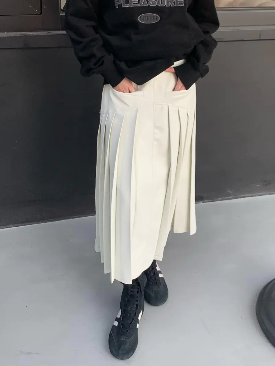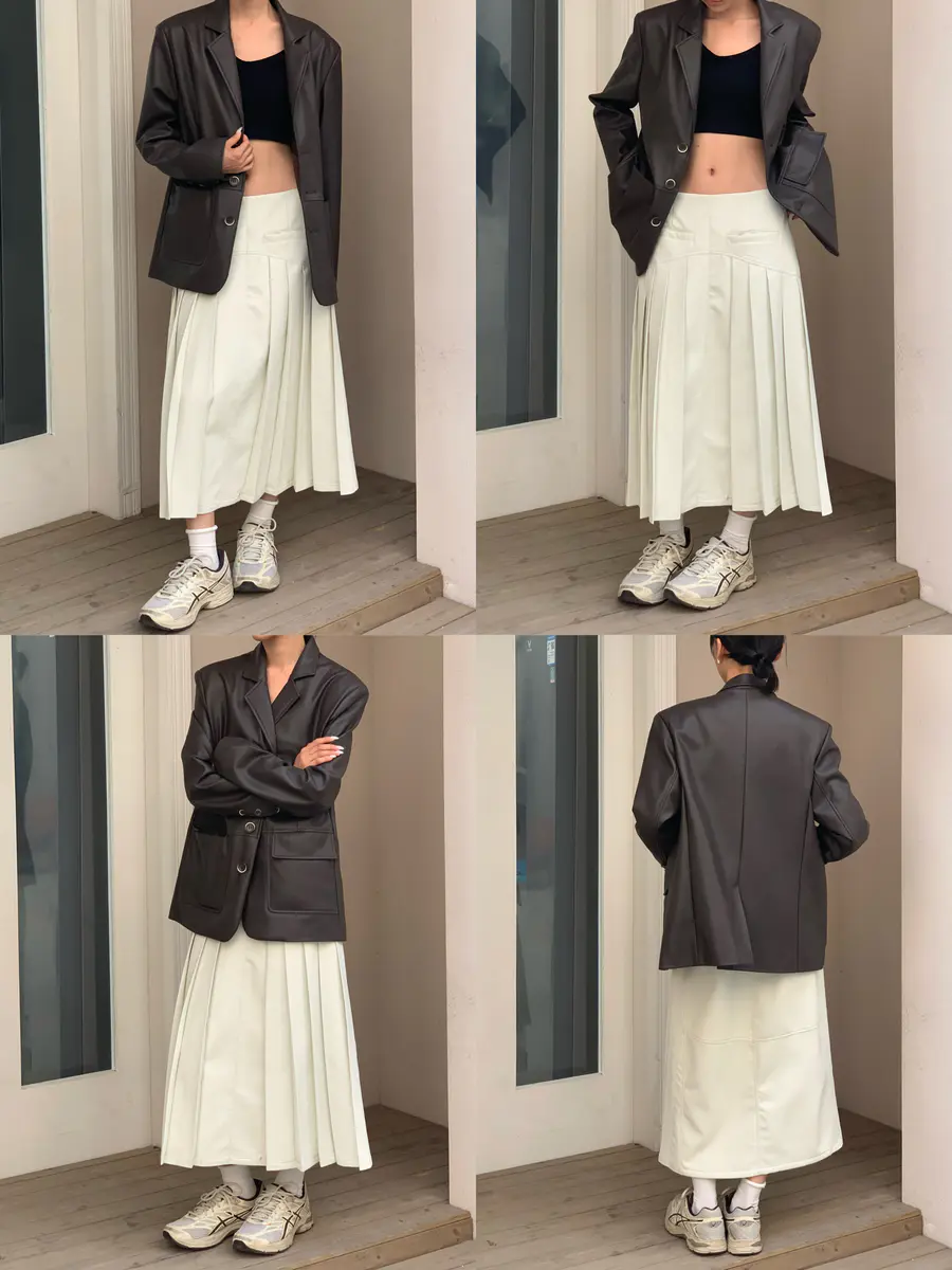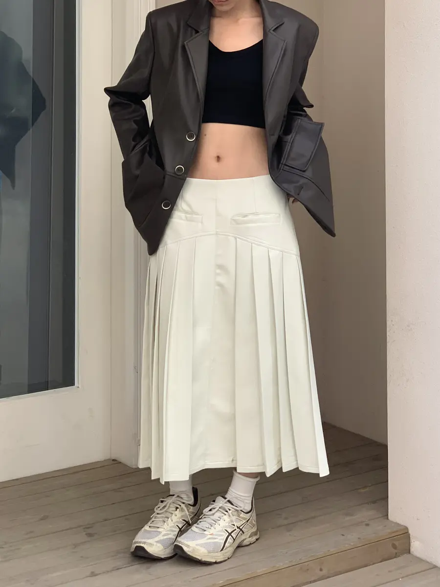 @月光白皮百褶半身裙