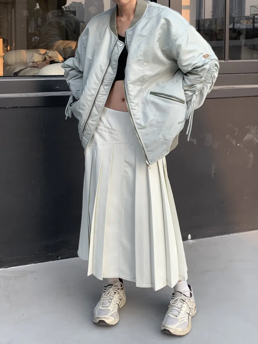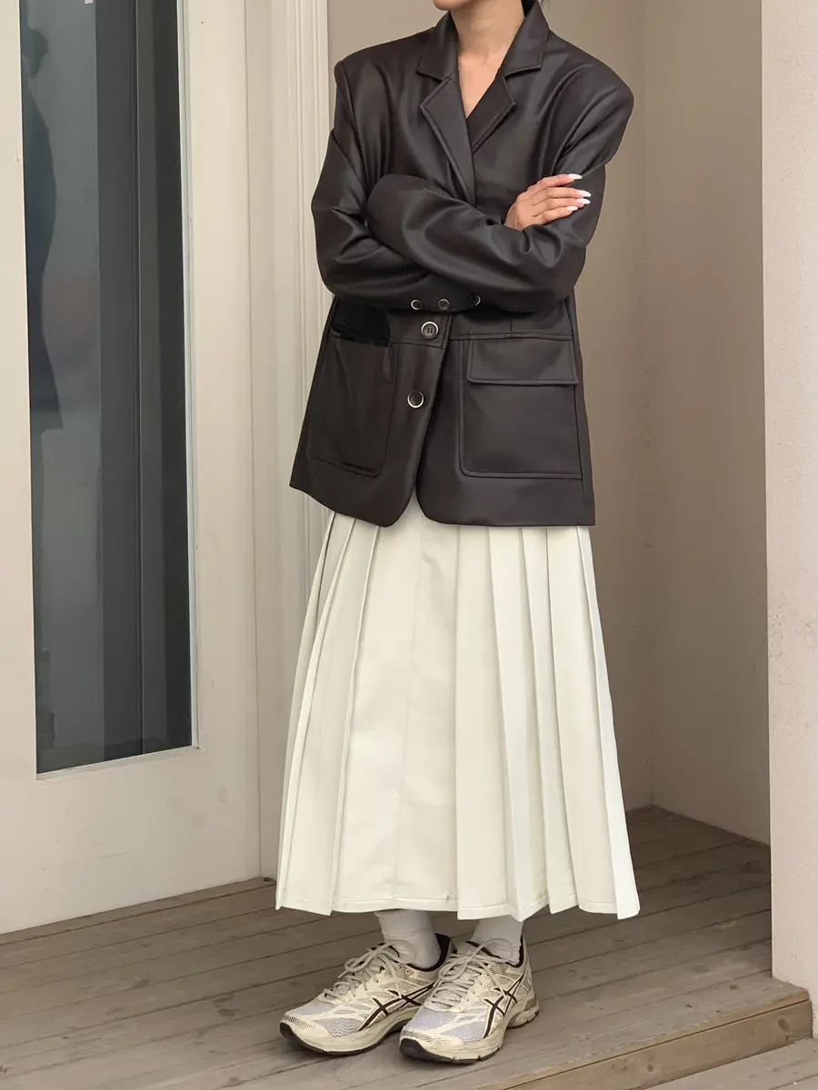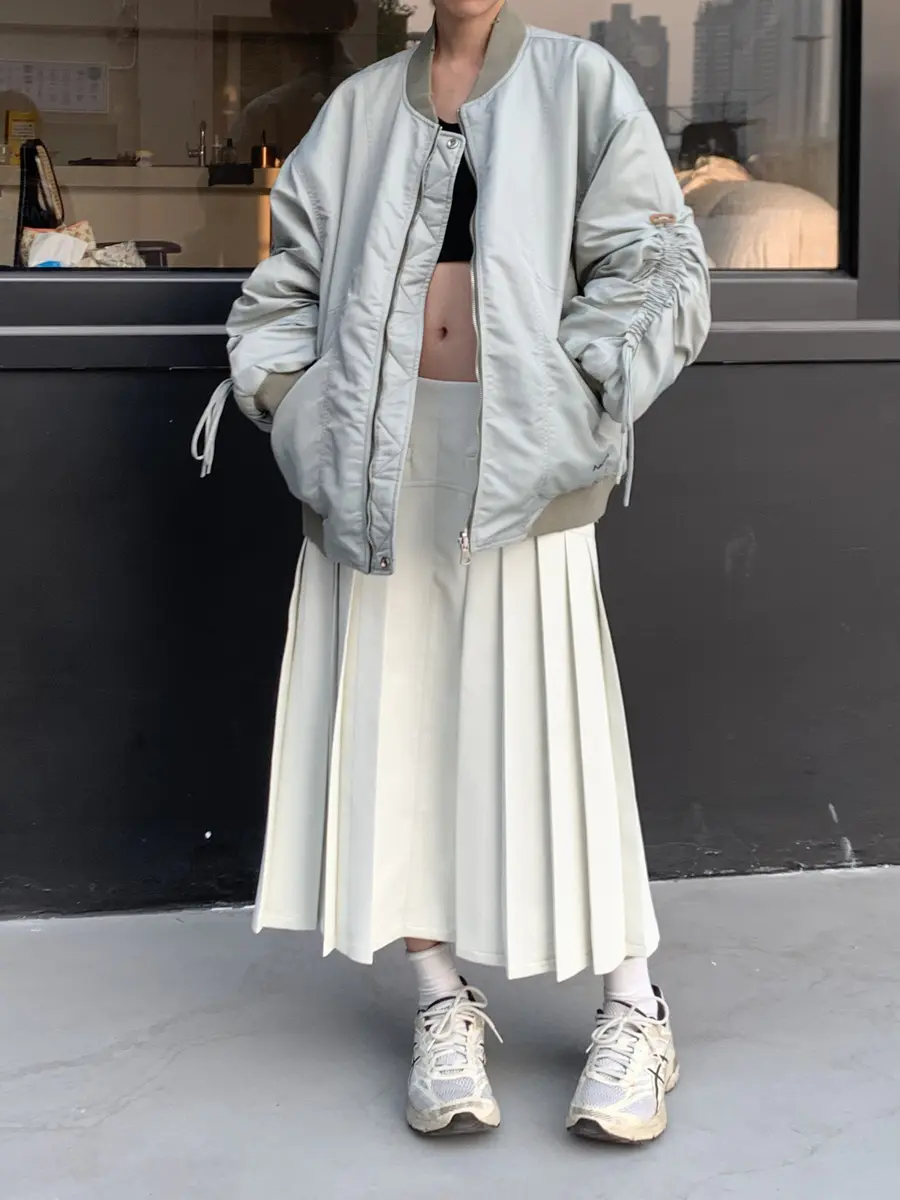 @月光白皮百褶半身裙