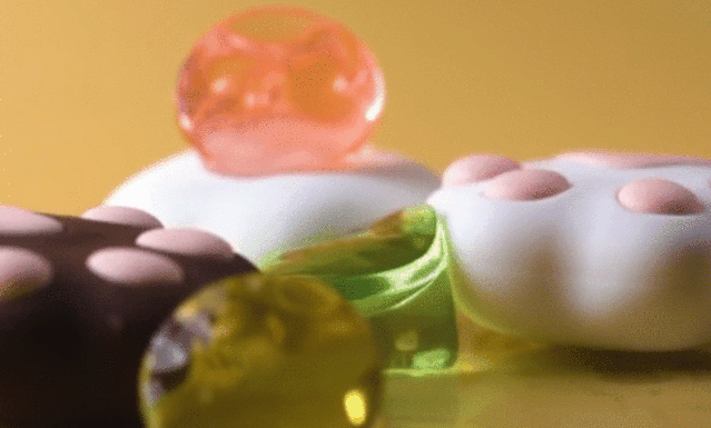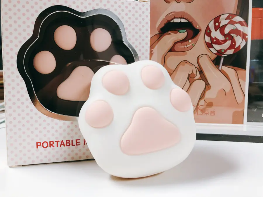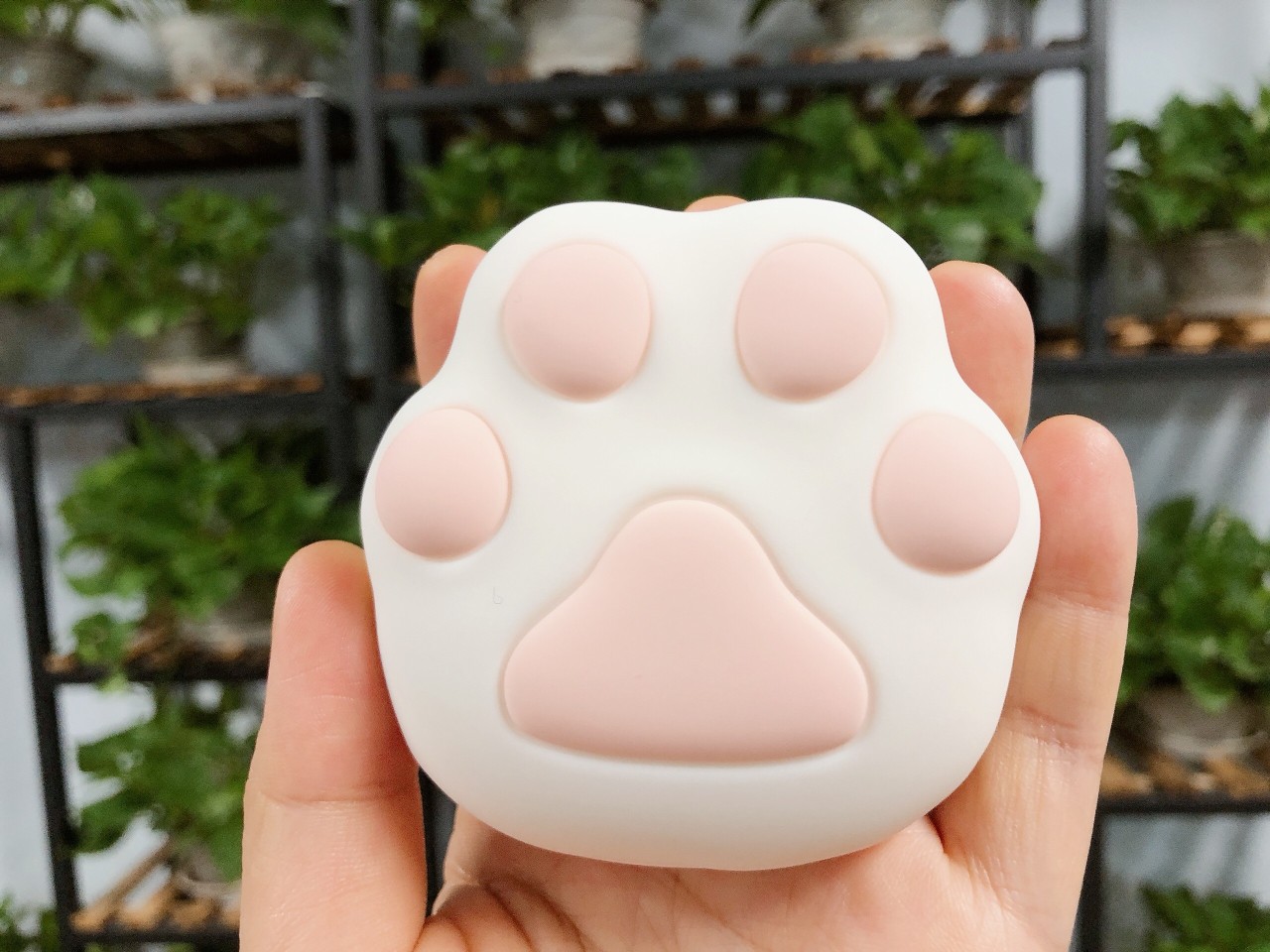 长宽为7.3厘米,厚3.5厘米左右,正好握在手里。下方中间的粉色肉垫是开关控制中心,上方的肉垫软糯Q弹,供小主解压蹂躏之用。
