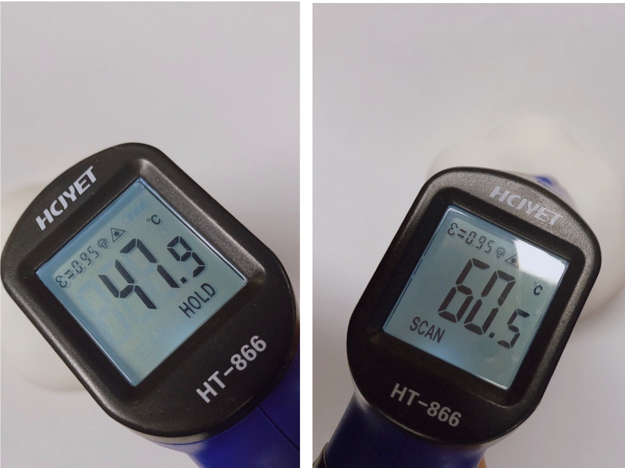 实测48℃已经非常温暖,60℃隔着一层衣物更合适。发热区是在光滑没有肉垫的那一侧,方便贴合在皮肤上暖宫(真的很贴心)。