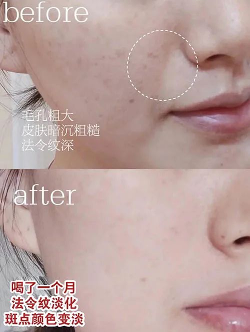 有粉丝反馈,坚持喝了一个月,脸上的法令纹、鱼尾纹明显变淡了,色斑也神奇地消失了!