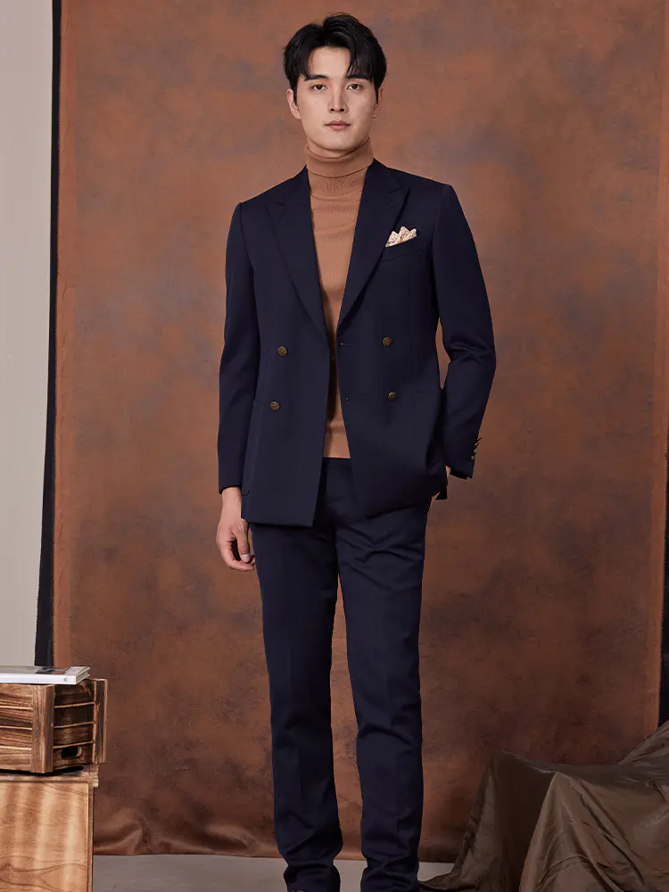 银河蓝重磅斜纹套西