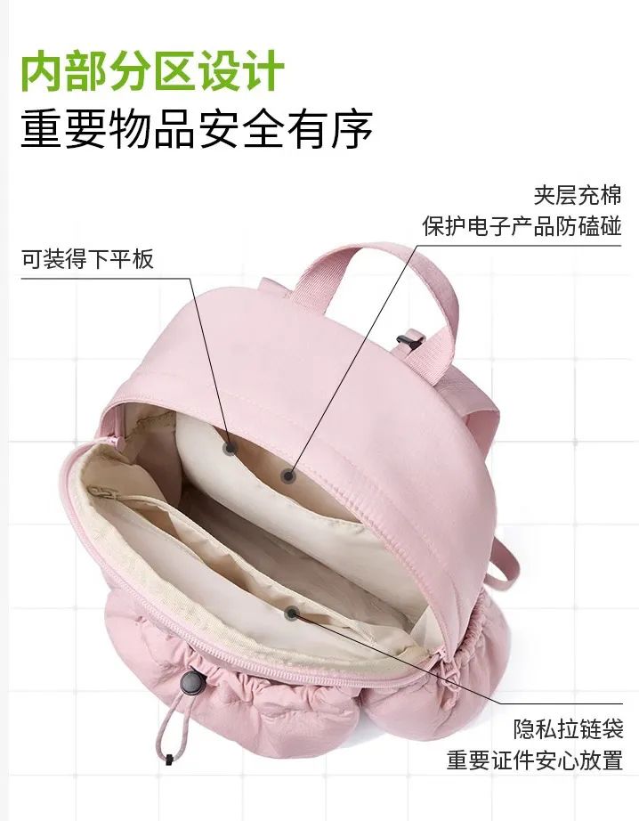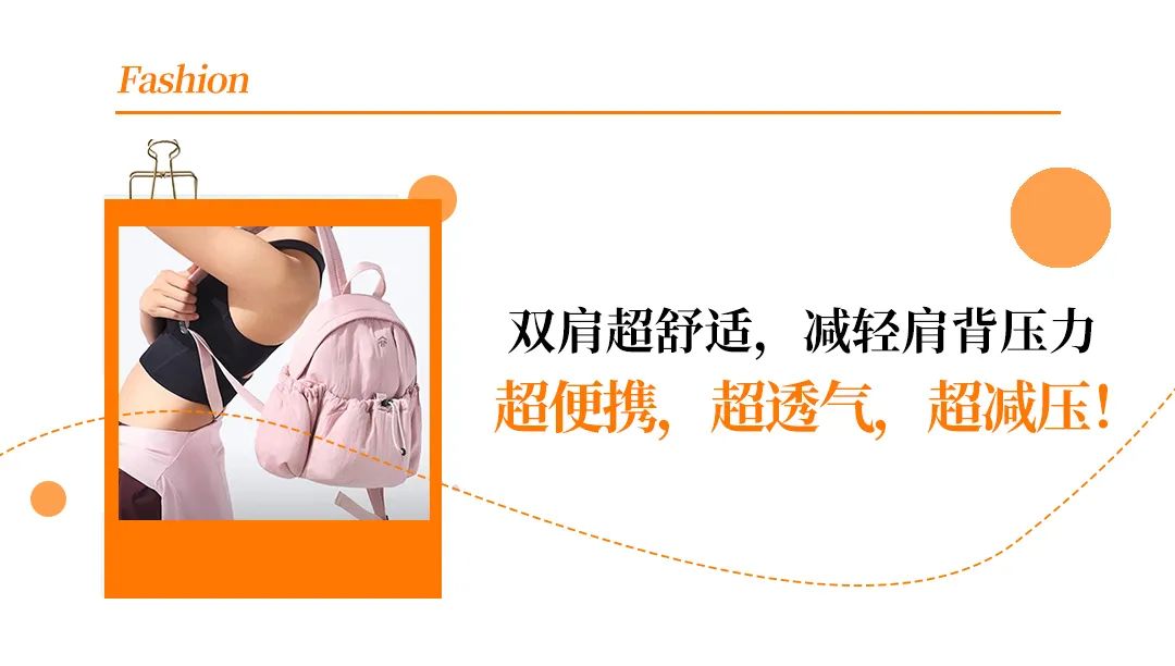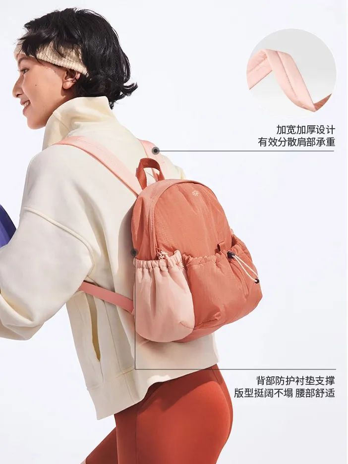 短途旅行、登山徒步:穿上舒适的运动装,再把矿泉水、食物、备用衣物等等都可以塞在里面,背上就能轻松出行。