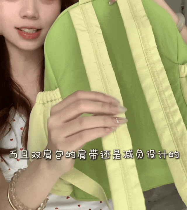 而且双肩包的肩带还是减负设计的,宽宽稳稳的,长时间背着都没那么容易“压肩”。