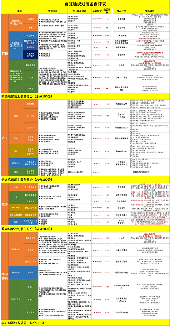 我们花了2年时间,评测了市面上各类学习好物,整理了幼儿园到小学自驱娃必入的装备清单,照着这个买,不花一分冤枉钱。文末有高清图领取方式。