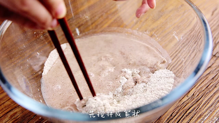面粉倒入碗中,加水,先搅拌成絮状