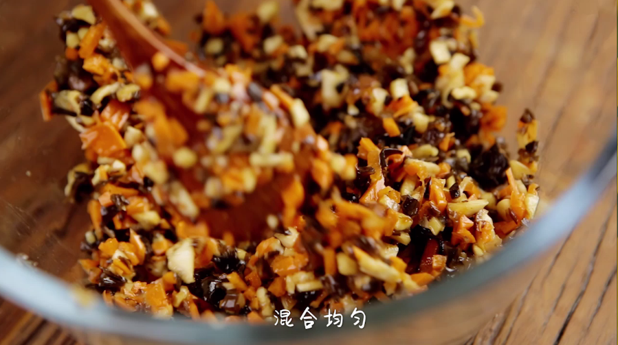 这个时间来制作馅料:黑木耳、香菇、胡萝卜切碎倒入碗中,加入盐、味极鲜、食用油、耗油、香油、糖搅匀备用,具体的量也可以根据自己喜好添加