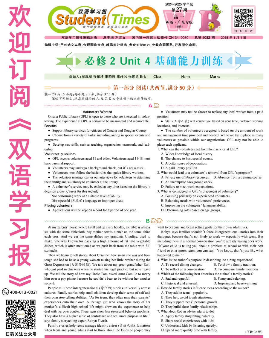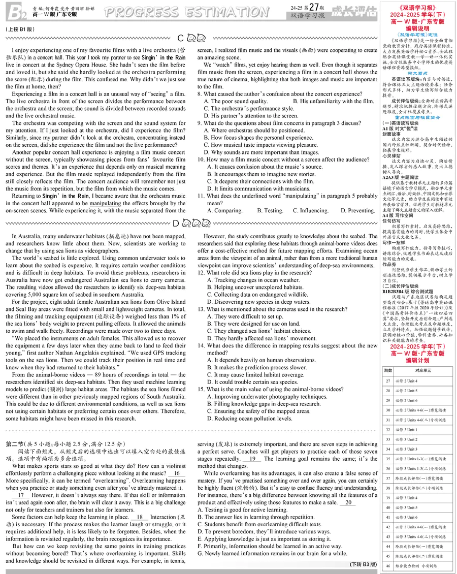 高中英语样报 高一 W版 广东专版 第27期
