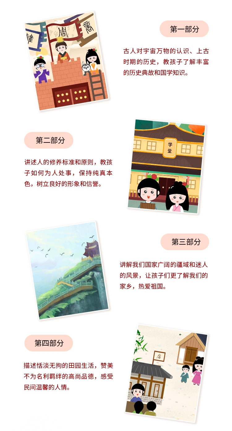 《千字文》涵盖了天文、地理、历史、自然、社会等多方面知识,是一部非常经典的国学启蒙百科全书。它比《三字经》更有文采,被后人称为“绝妙文章"!