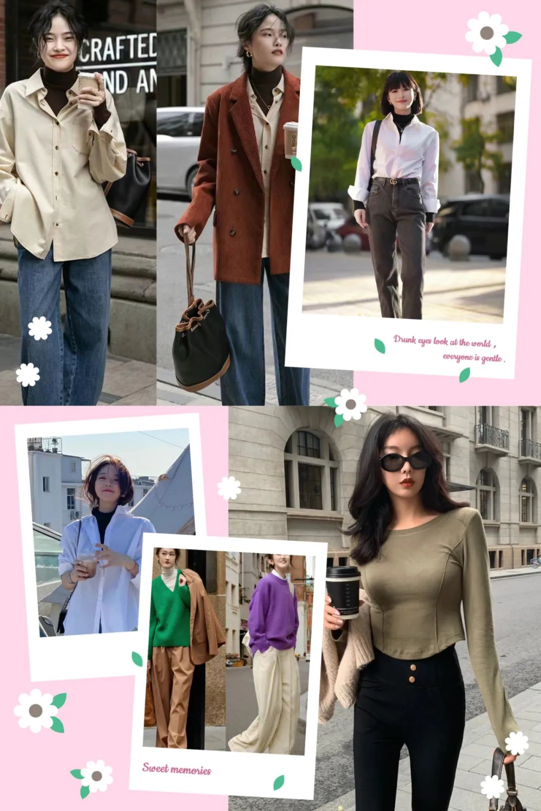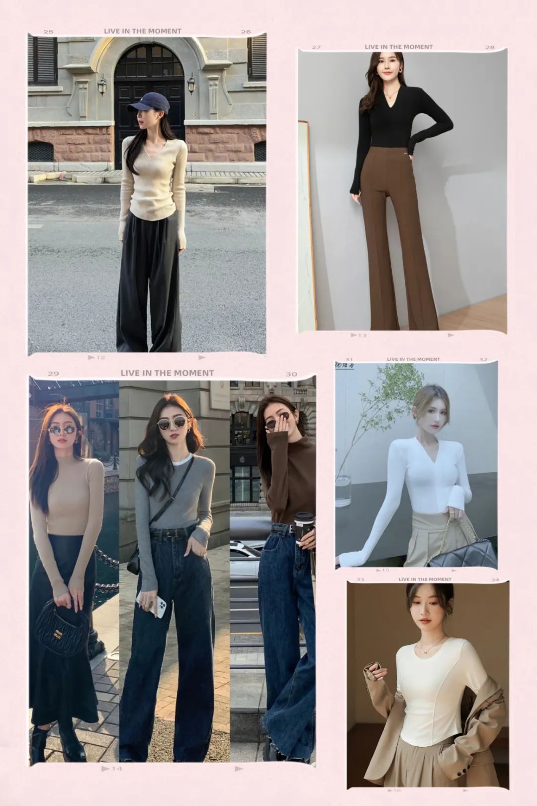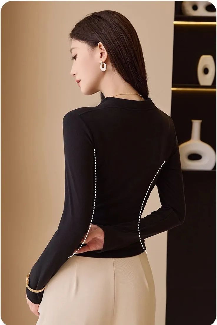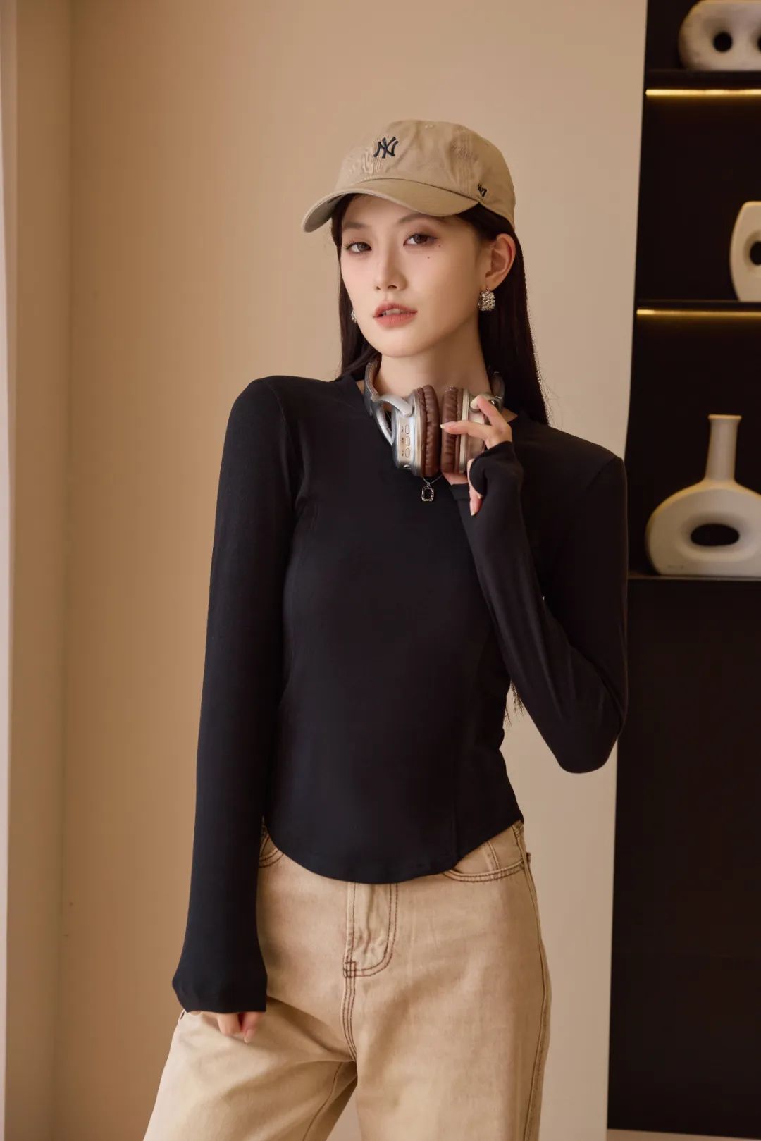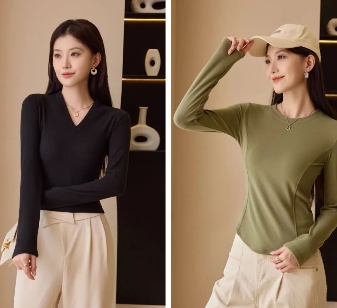 这个圆领设计得恰到好处,不会太高勒脖子,也不存在太低暴露走光。非常经典百搭,还能修饰颈部线条,甭管什么身材脸型,买它就对了!和V领不同的是,这款上衣多了两侧的鱼骨设计,遮肉效果直接翻倍。巧妙包容多种身材,肩宽、麒麟臂、小粗腰等都可以“瘦瘦瘦”!无论是正面、侧面还是背面,视觉上都给人“小了一圈”的既视感。我们将它和普通打底衫上身测试对比,区别竟然如此之大:肩部小了,腰围小了,整个人像缩水了一圈,这显瘦效果,简直是打底衫界的天花板!都是经典的百搭色,穿上满满的韩式酷辣风,city到不行~百褶裙、短裙、阔腿裤、牛仔裤、紧身裤,甭管是什么下装,随便穿都好看!