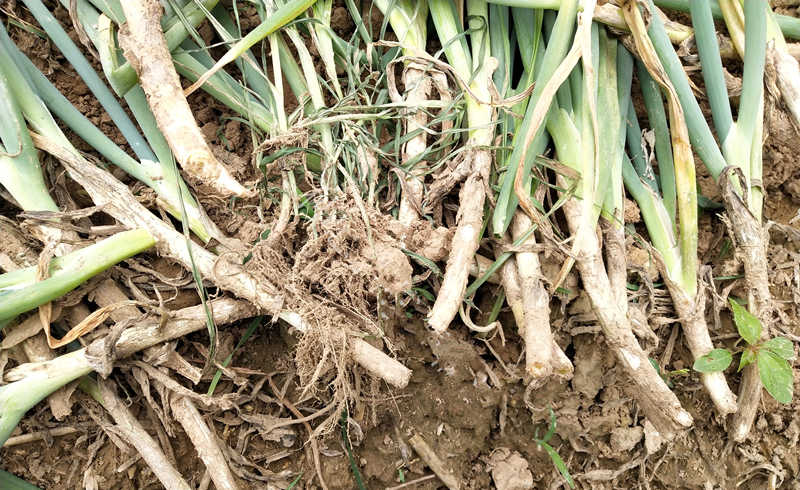 葱根腐病是一种真菌引起的病害,该病会造成根部腐烂,吸收功能减弱,植株无法吸收水分、养分,最后全株死亡。