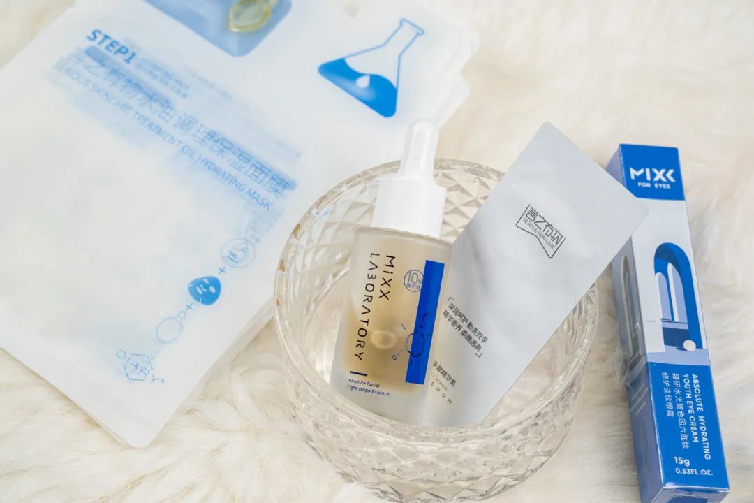 (内含:价值149元的MixX laboratory臻研水光丰盈修护淡纹液 20g+价值148元的MixX laboratory臻研水光玻色因六胜肽修护淡纹眼霜15g+价值超100元的:言之有物锁水膜5片+言之有物手精华2ml*3,真的是随便一个赠品的价值就已经值回票价了!)