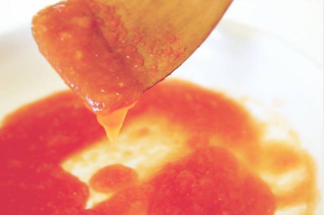 爱吃甜的朋友,2斤西红柿最多放3两冰糖,自制番茄酱避光储存可放4-6个月,口味酸甜,爽口开胃,可以直接蘸着吃,比如薯条、面包: