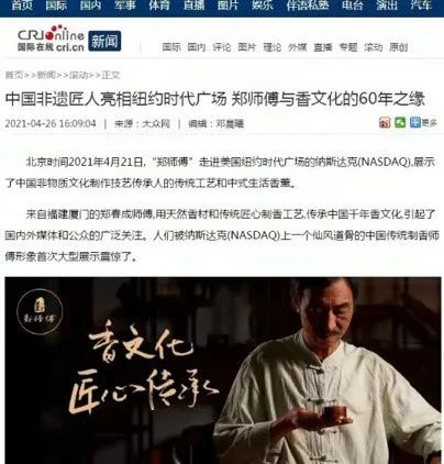 【郑师傅古方三香】中国传世名香,火遍世界非遗手艺 登陆纽约时代广场