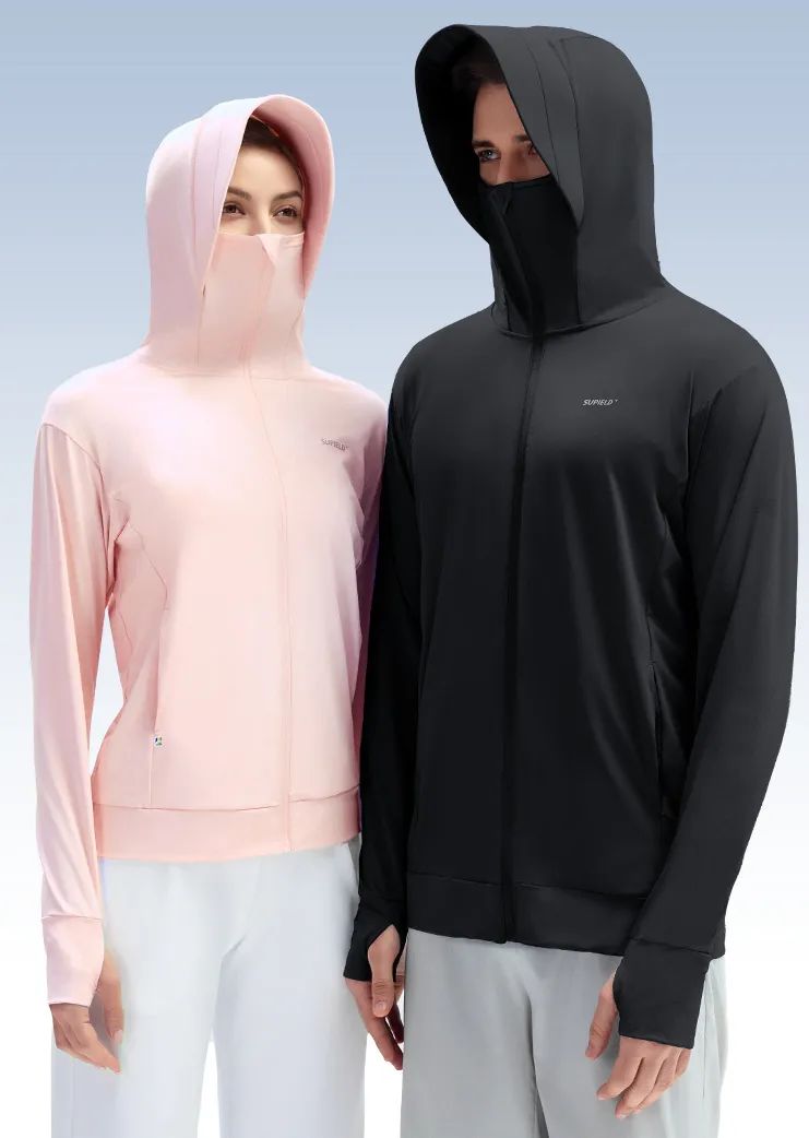 新版防晒衣的帽檐和面罩都做了升级加高加大设计,拉链拉到顶,可以完全遮住脸,但一点都不会遮挡视线。