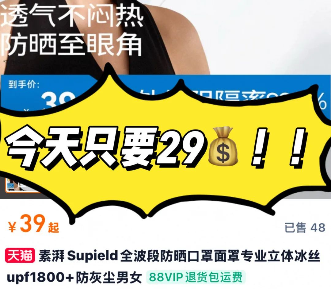 夏天怎么能少得了防晒口罩,给大家带来素湃防晒口罩!官方旗舰店的价格是39元起,今天在这里只要29元!