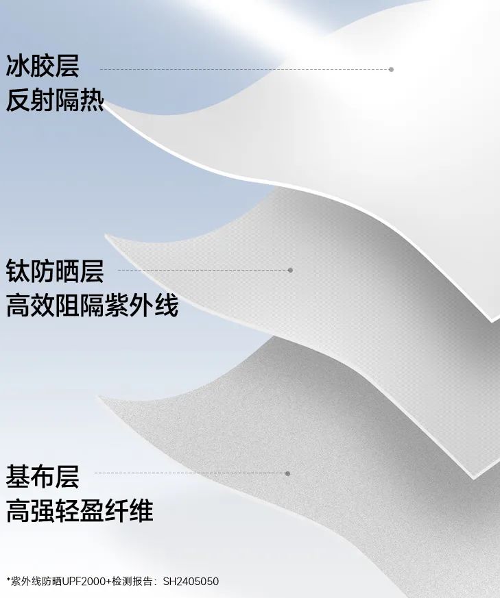 伞面使用的是三层复合钛防晒冰胶伞布,UPF2000+变态级防晒!薄如纸却堪比防晒装甲,烈日下连紫外线都要叫“爸爸”~