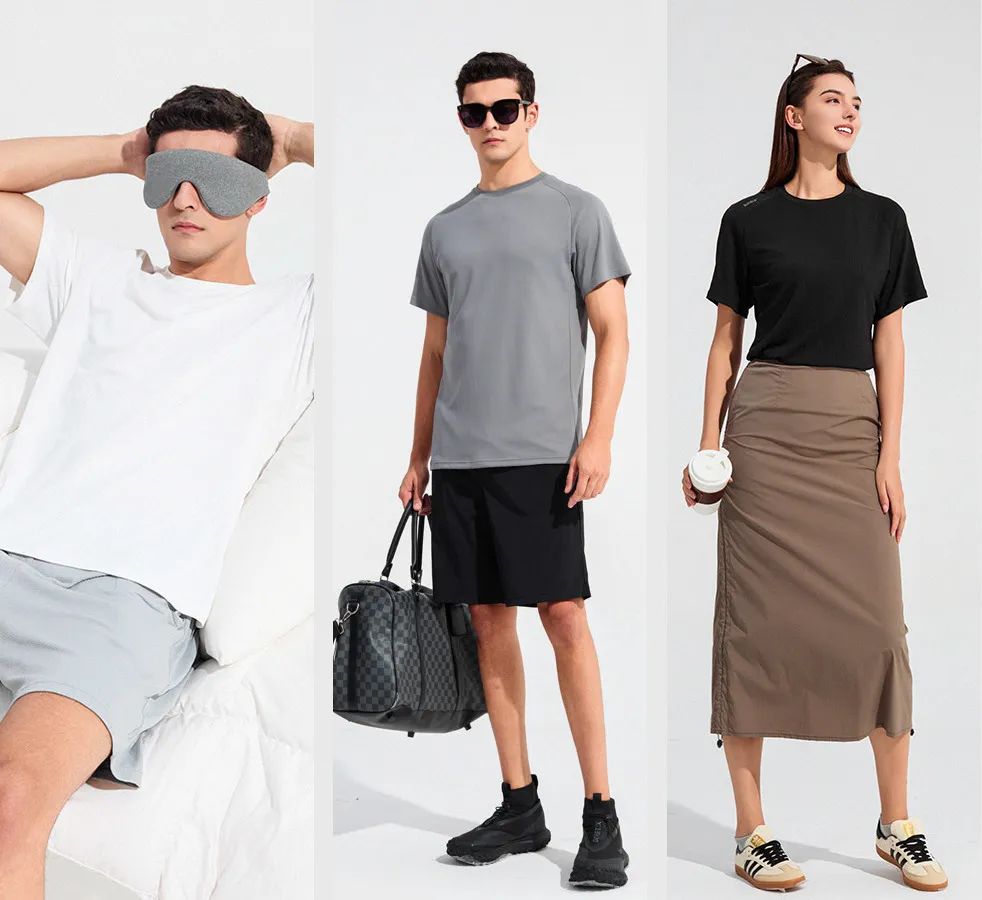 为此,素湃研发了一款可以实现0回潮,贴身穿能保持干爽不黏人的零爽科技凉感透气T恤。