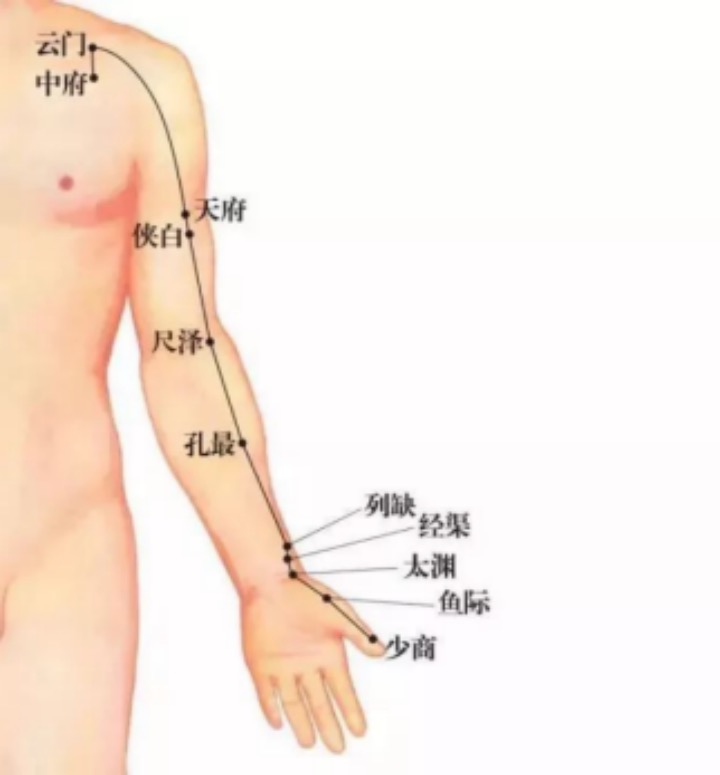 如果在立秋这个时期有呼吸系统或者容易便秘的问题,可以从天府穴开始,沿着肺经的循行路线(手臂内侧,且靠近大拇指一侧)按揉