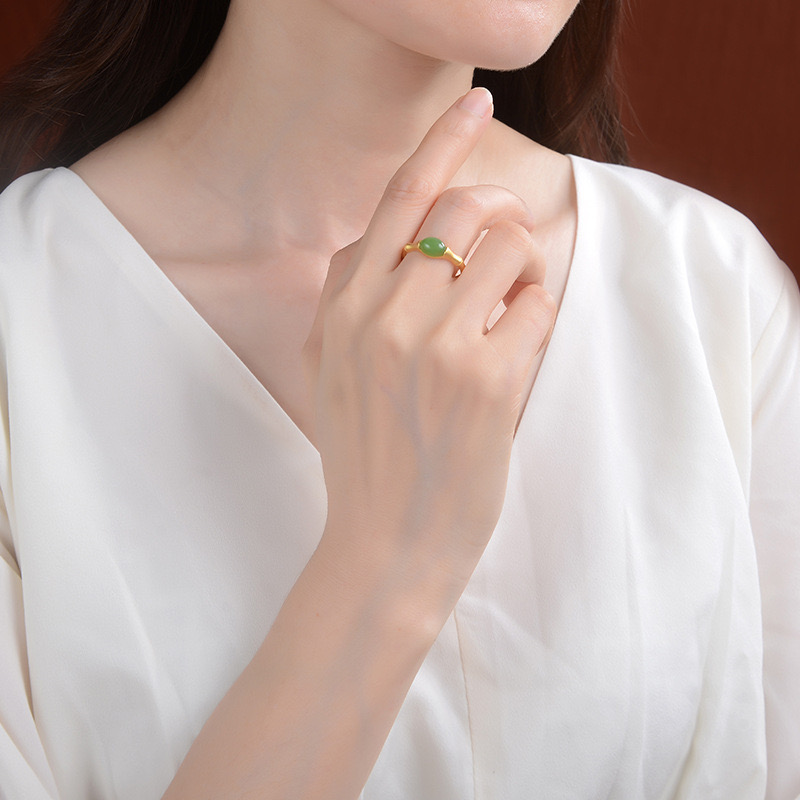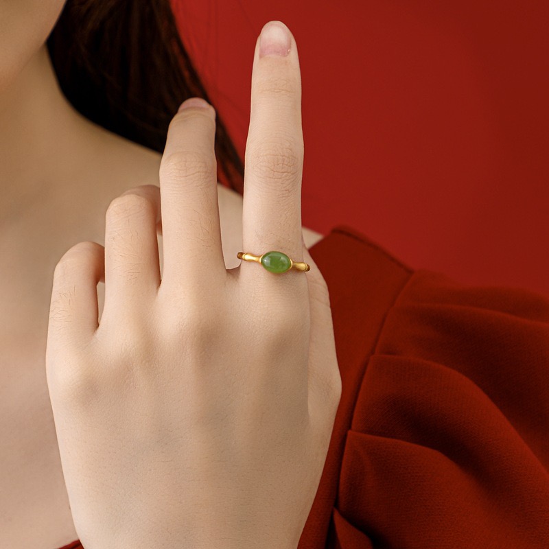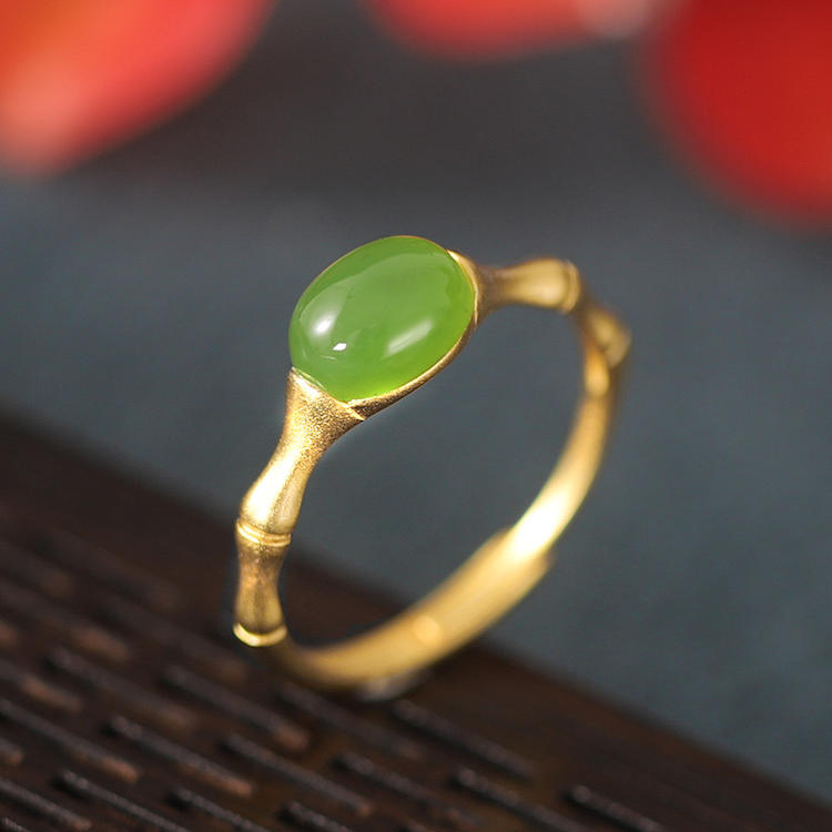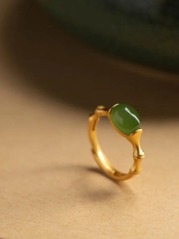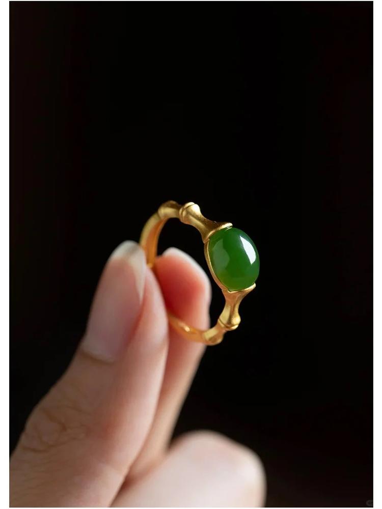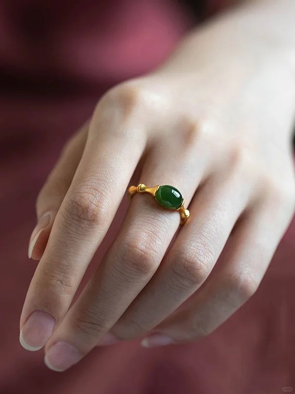 💍s925纯银立体竹节戒环,配上一颗碧透的和田玉珠,新颖,小众,古韵十足🍃
