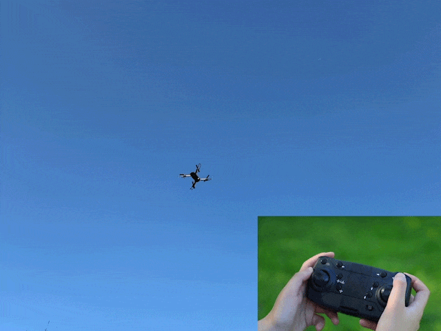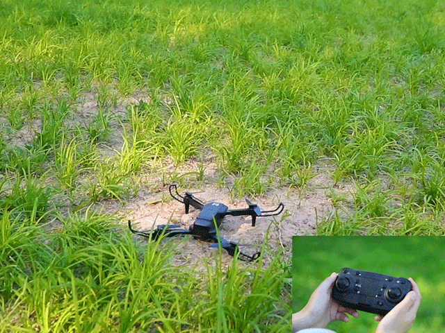 向上推动操纵杆可以看到无人机慢悠悠的起飞,超级稳定。