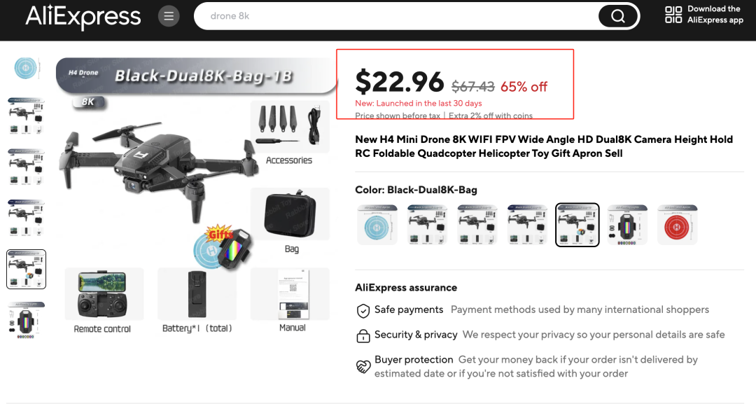 这款无人机在海外的平台上售价都要接近500元,要是赶上大活动后的打折售价都要达到166.17元,这次我们直接和工厂谈到了优惠折扣价,只要399元+33积分起。