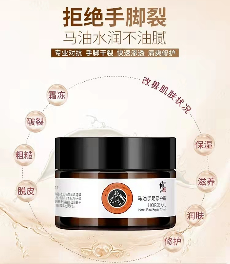 马油手足修护霜采用的是,90%亲肤性马油精华