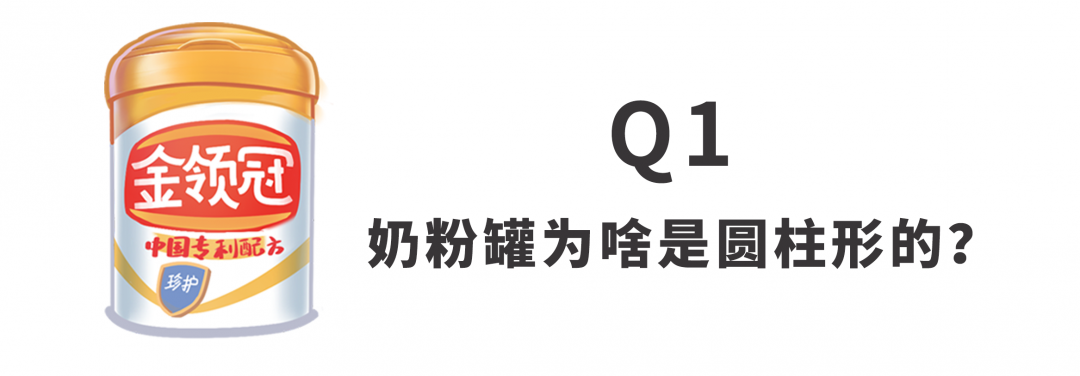 A:圆柱形的奶粉罐,内壁是一个连续的圆弧面,没有间断,没有夹角,这样有利于更方便地勺取奶粉简单。