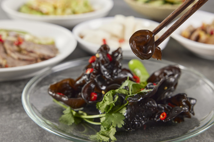 作为“菌中之冠”, 每100克干品黑木耳中含蛋白质9.4克,碳水化合物65.5克,钙357毫克,磷201毫克,铁185毫克,且口感脆爽细腻,味道鲜美,可素可荤。