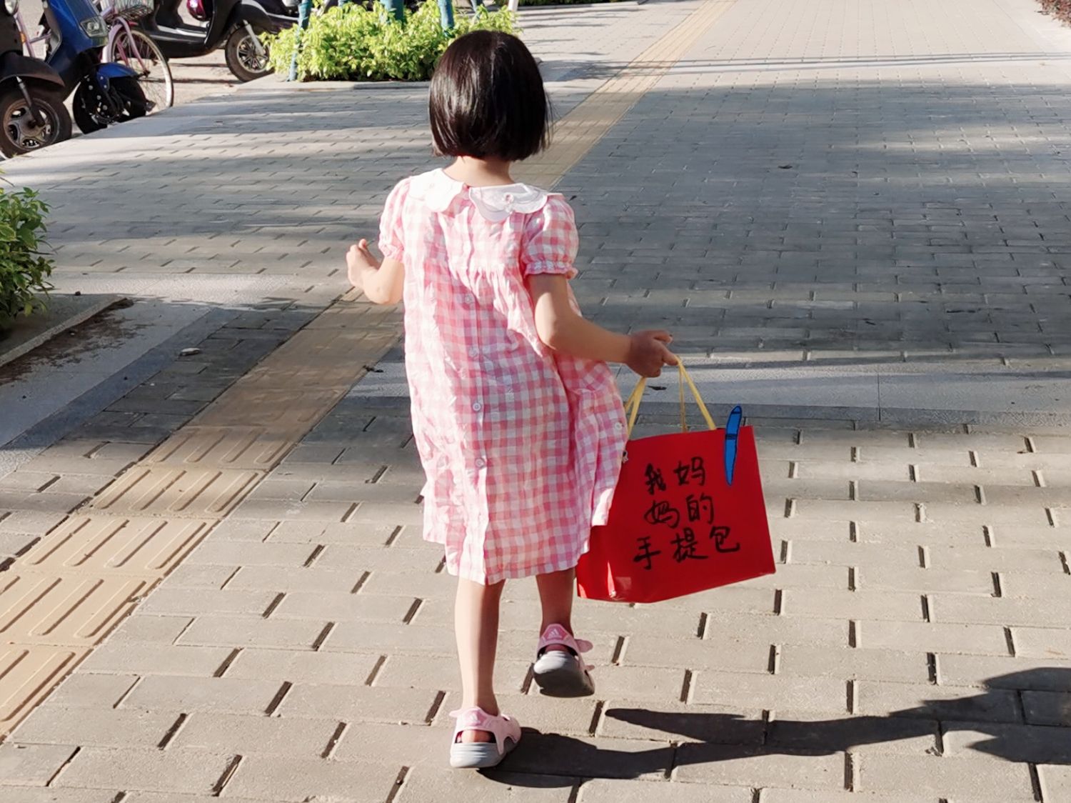 妹妹还提着这个手提包逛了一天,晚上还要求和我一起读《我妈妈的手提包》。