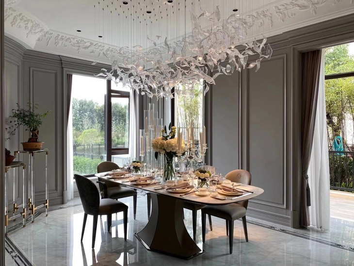 这组意式奢宅设计有着简约与奢华平衡感,细节中窥见独特精致的生活态度。空间整体色调选用清雅的灰白色调,四周蜿蜒缱绻的装饰线条凸显古典浪漫的气质,MAGISTER UT玛润奇家具的置入给予空间十足的现代时尚感,充满艺术感的家具设计和个性十足的华丽灯饰十分相配,艺术与实用功能兼具,创造出华丽又浪漫的空间氛围。
