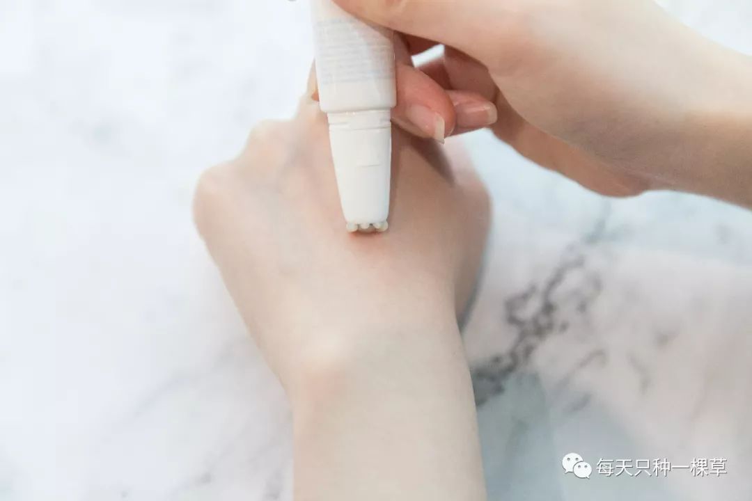 扭开开关后,轻轻一挤,能看到乳白色的膏体从走珠周围慢慢出来,直接抹在有痘印的位置就行~