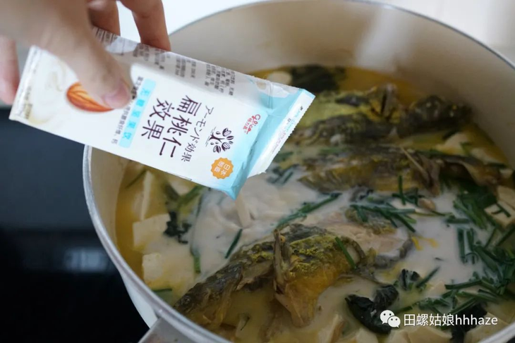 7.在关火之后再加入2盒无糖版「扁桃仁效果」,撒白胡椒粉就可以出锅啦