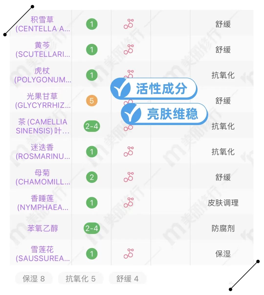 ✅舒缓:积雪草、母菊花提取、黄芪、迷迭香