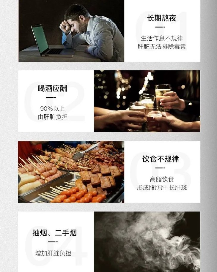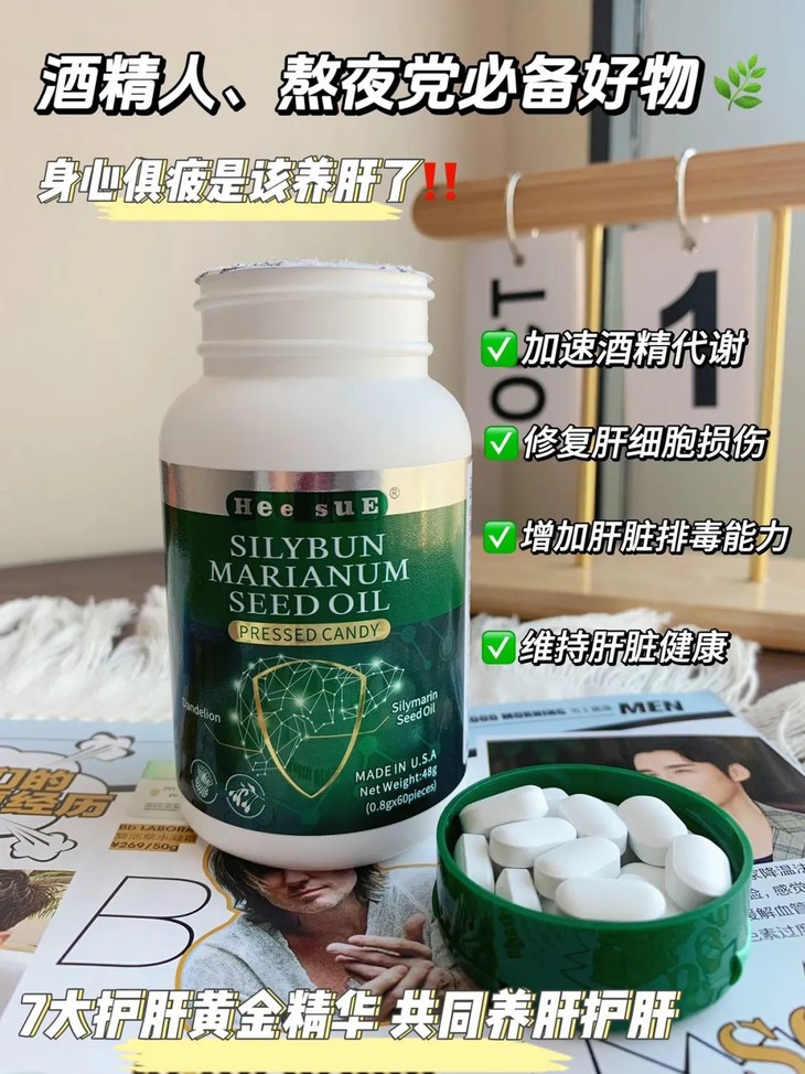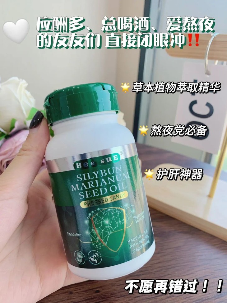 家庭的重担,事业的竞争,让我们逐渐习惯了熬夜加班、应酬喝酒的日子。习惯了一个人承担所有,却往往疏忽了自己的健康,早已“肝”不动了。或是吸烟、二手烟中的有害物堆积,都在不停地催化肝脏问题!作为人体的重要代谢器官,肝脏每天都在为你的种种不良生活习惯买单。若这时候还不注意保护你的肝脏,就有可能慢慢发展成严重的肝部问题!想要保护肝脏,正确的方式是净化+修护!肝脏清净了,才能更好地运作代谢。时常需要加班熬夜“爆肝”,或面对推杯换盏的场合……不妨用“肝净好帮手”——美国合素·水飞蓟籽油片,为你守护肝脏健康!专利提取多种天然植物精华,每天3粒,帮助洁净肝脏、为肝减负。值得一提的是其中的姜黄素成分,特别适合经常应酬饮酒人士食用。主要成分都提取自可做食品的植物,不会对身体造成二次负担,可以放心长期服用。凭借真实可靠的护肝实力,它还斩获了多项权威奖项,效果得到认证!气色明显得到改善,身体都变得更有活力,不再容易疲惫!或是饮酒前吃上2颗,帮助抵御酒精对肝脏的侵害,呵护肝脏健康;如果你属于以下任何一种人群,都建议用它呵护你日日受累的肝:
